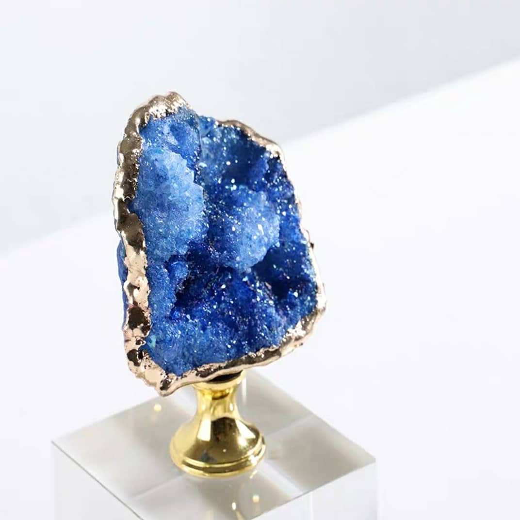 Статуэтка Жеода агата в золотой глазури на подставке из латуни и хрусталя