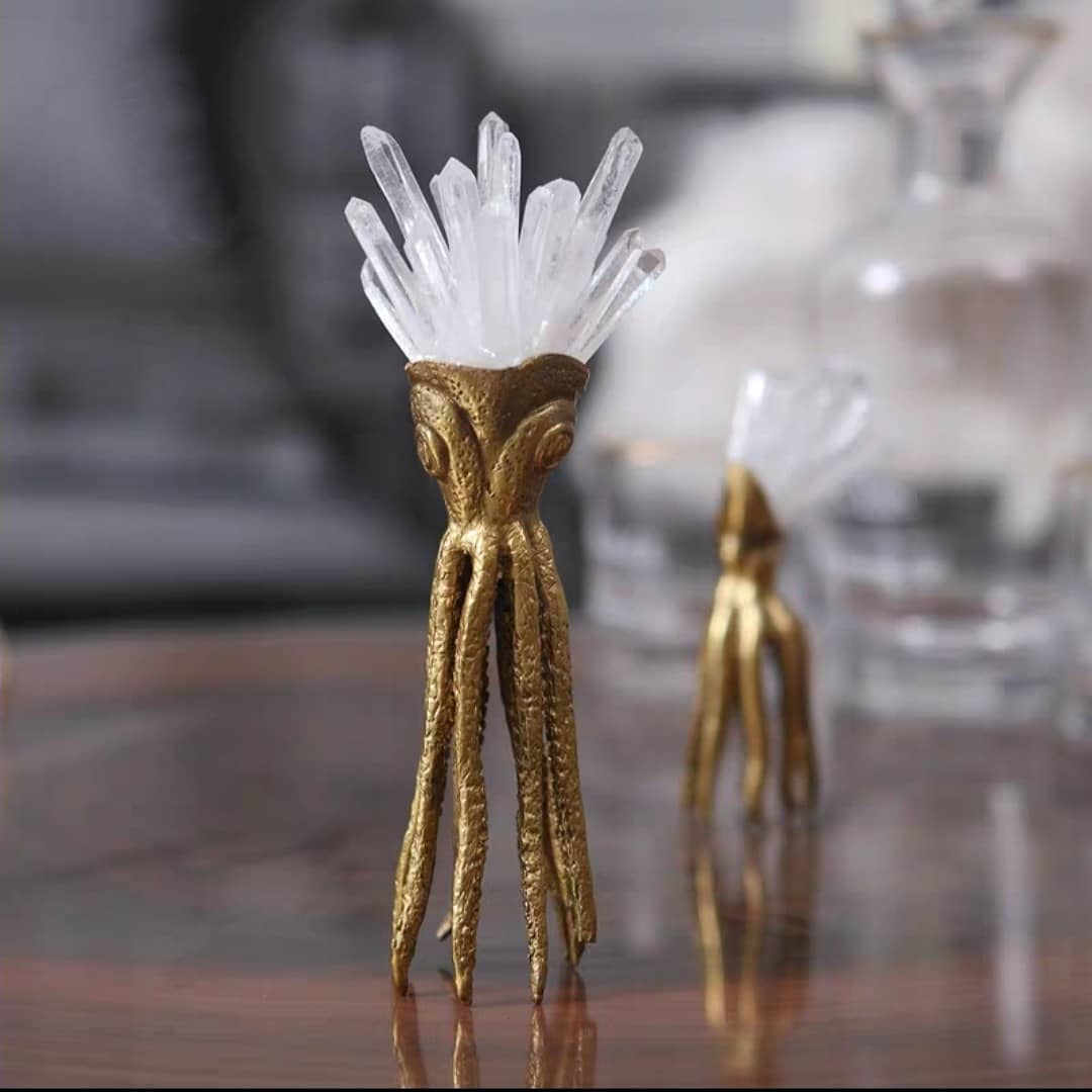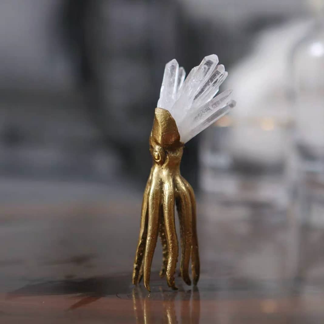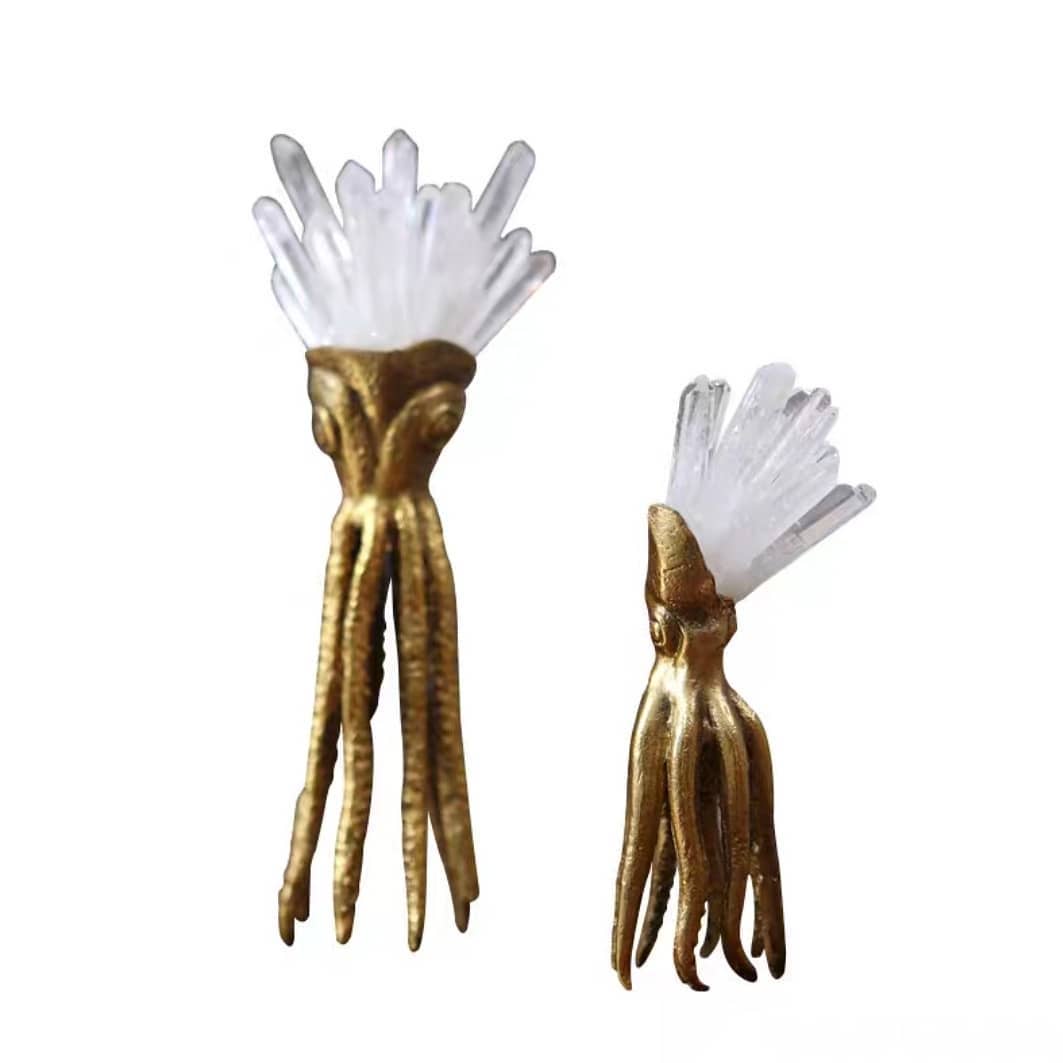 Статуэтка Осьминожки из латуни с кристаллами горного хрусталя S