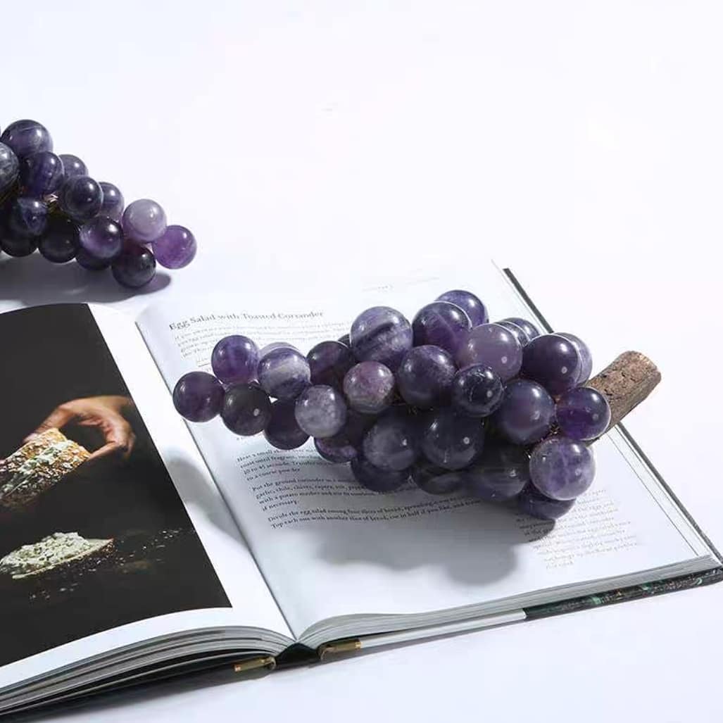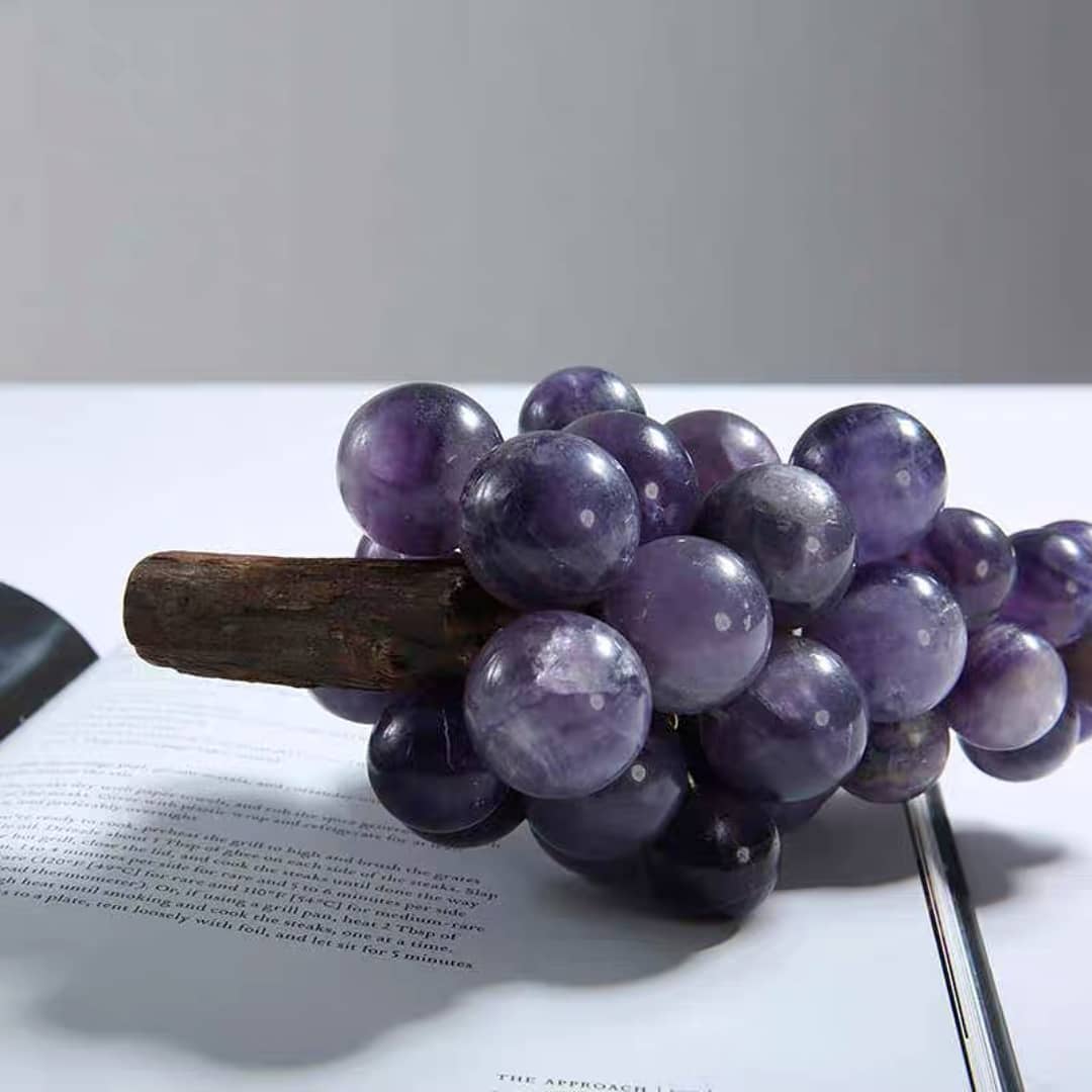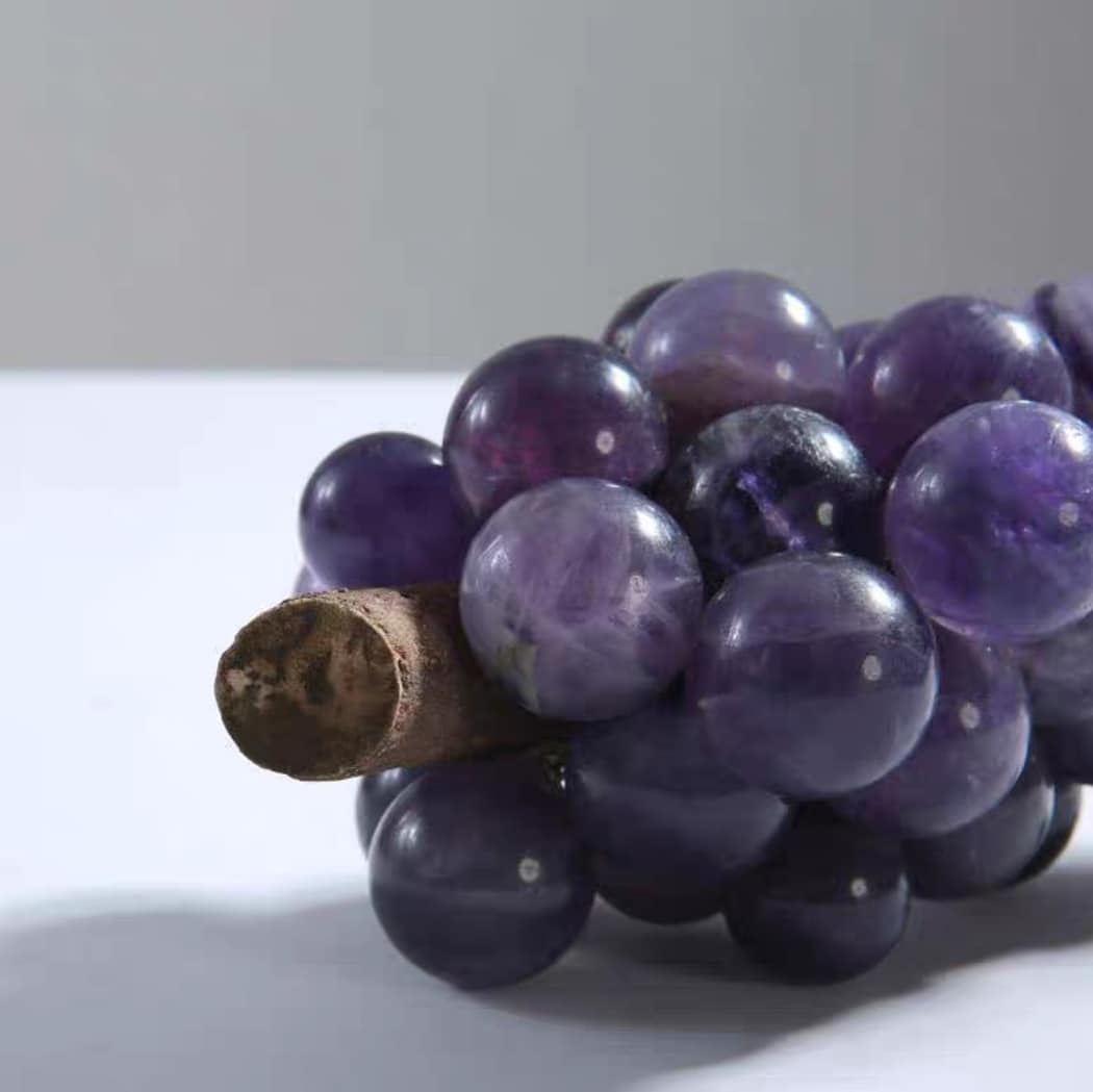 Декоративные гроздья винограда из редкого фиолетового нефрита. Внешне почти не отличается от настоящего пино нуар или мерло. Потрясающий декор для ценителей хорошего вина. В коммерческих заведениях «дионисийской» направленности, впрочем, такие «ягодки» тоже весьма востребованы.