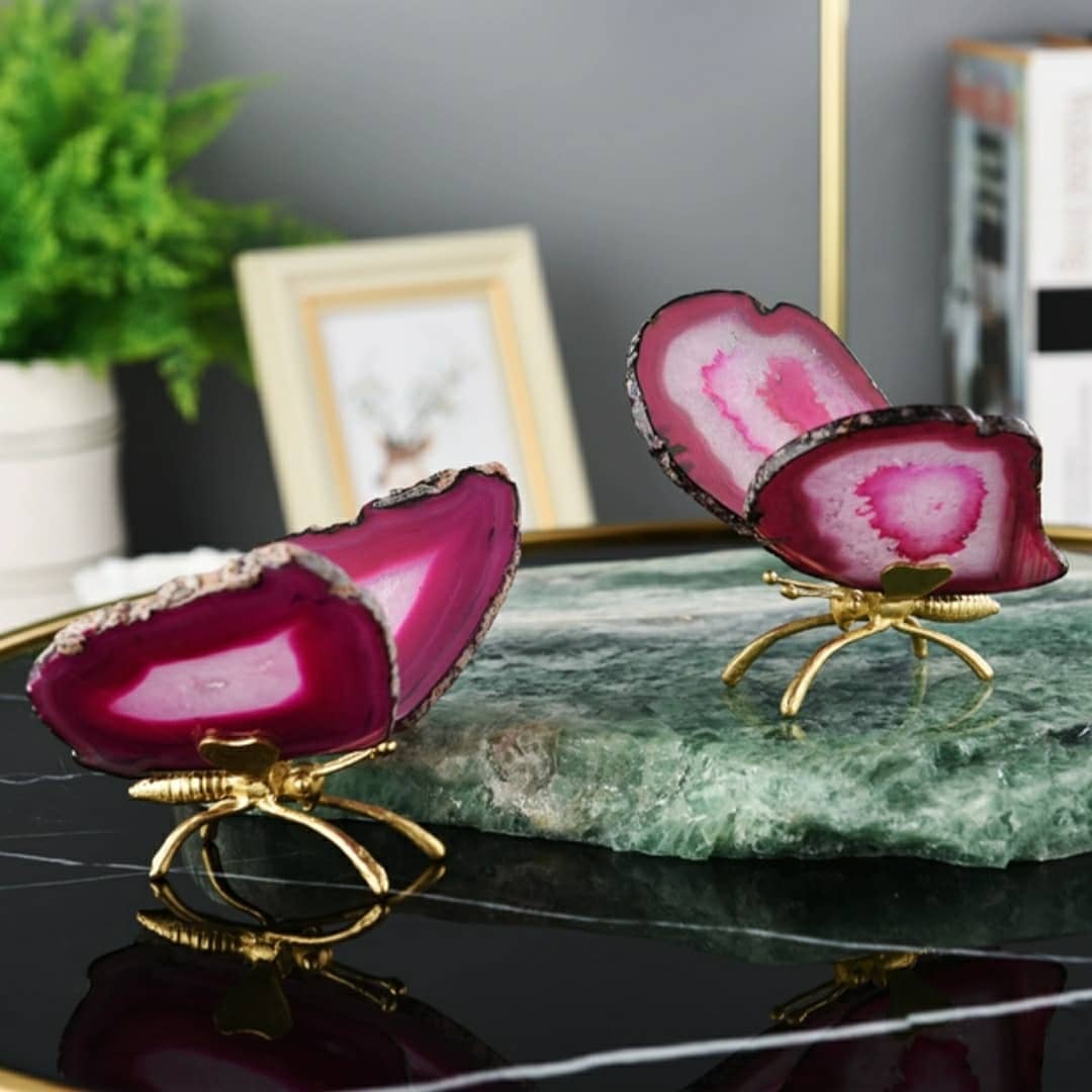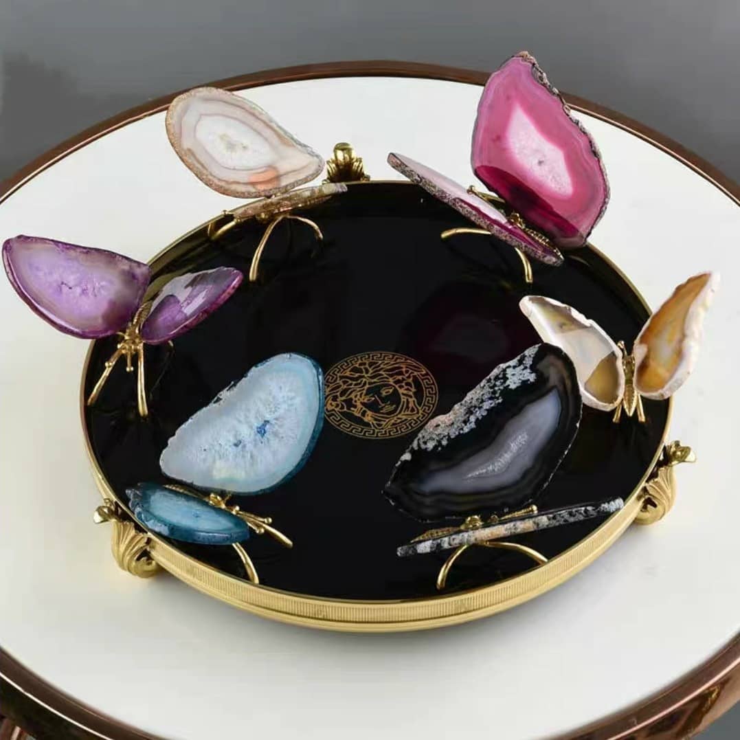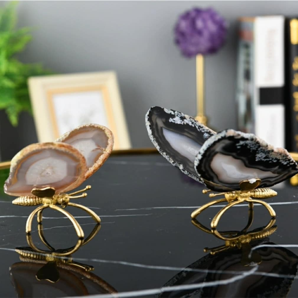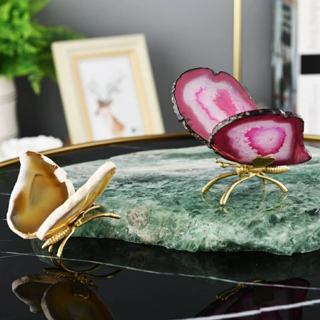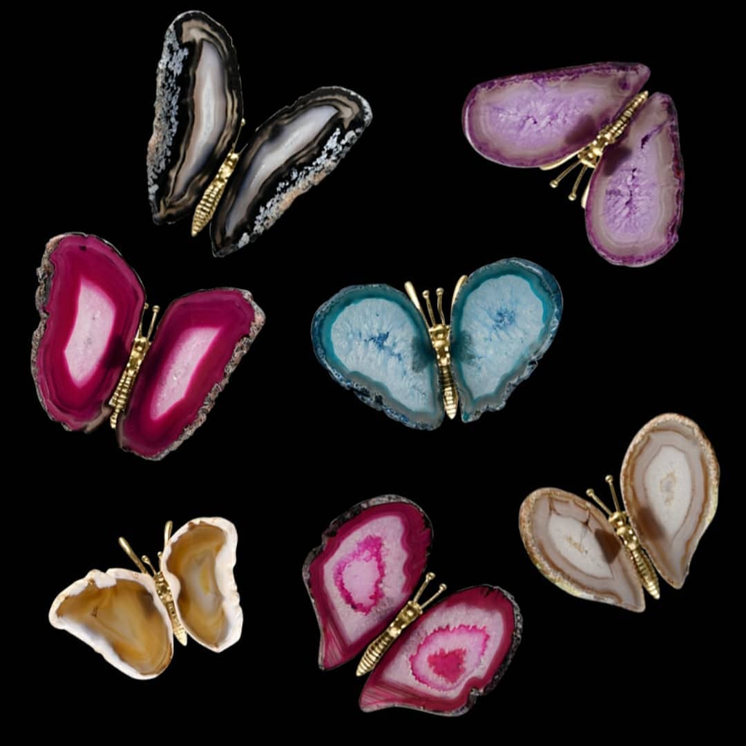 И все ценители прекрасного могут отныне приобрести у нас бабочек из латуни, с роскошными крылышками из флюорита и агата различных цветов.