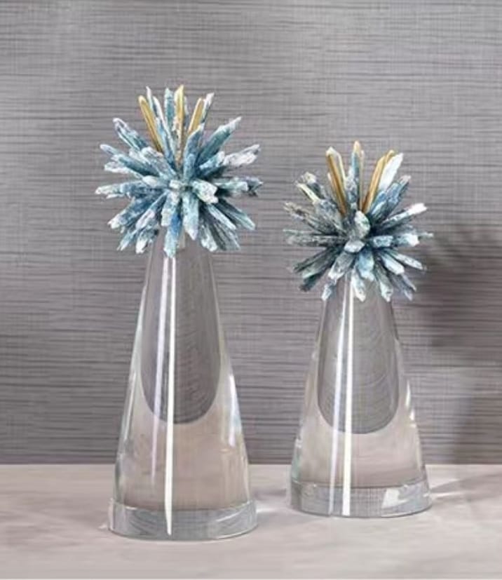 Усеченный конус из чистейшего хрусталя, увенчанный ярким "ёжиком" из натуральных кристаллов.