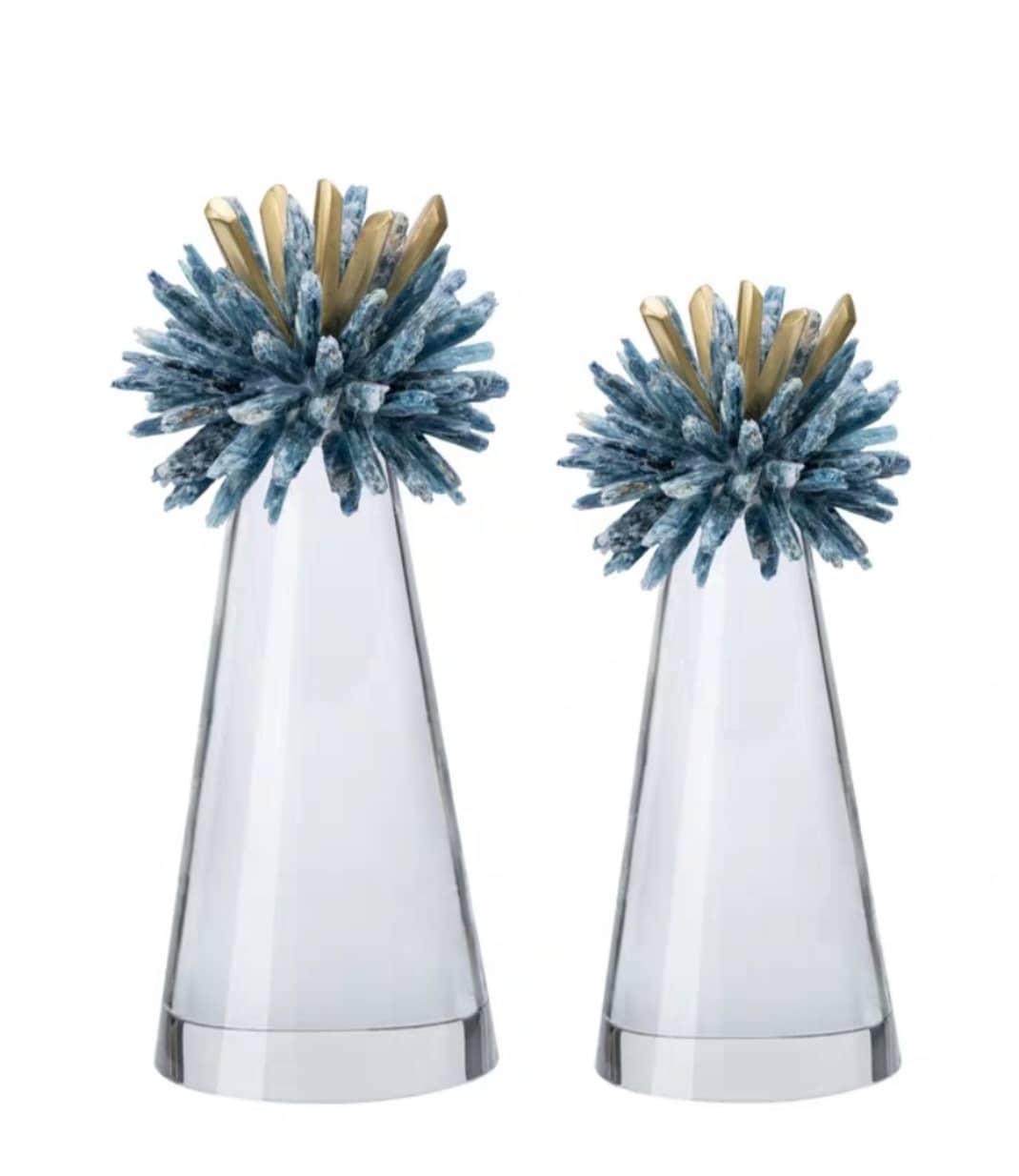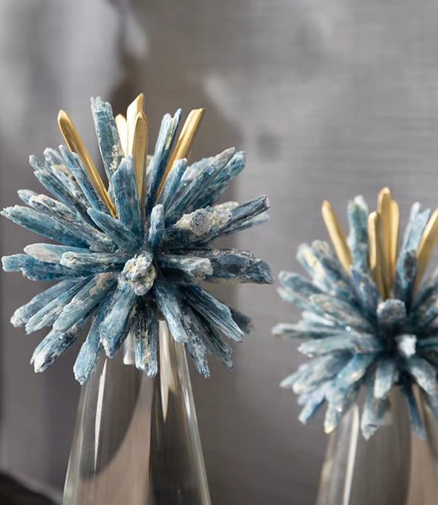 Статуэтка Ёжики из кристаллов кианита на конусе из стекла M