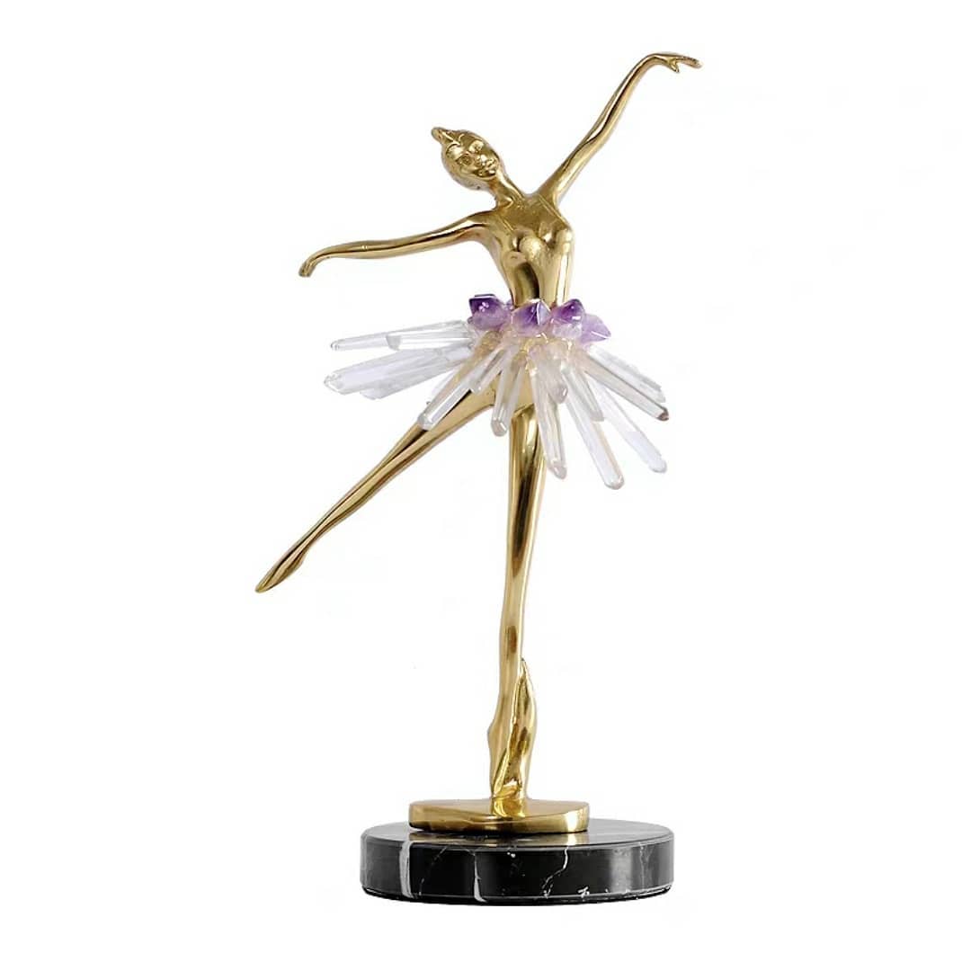 Статуэтка Балерина в пачке из кристаллов аметиста и горного хрусталя на мраморной подставке