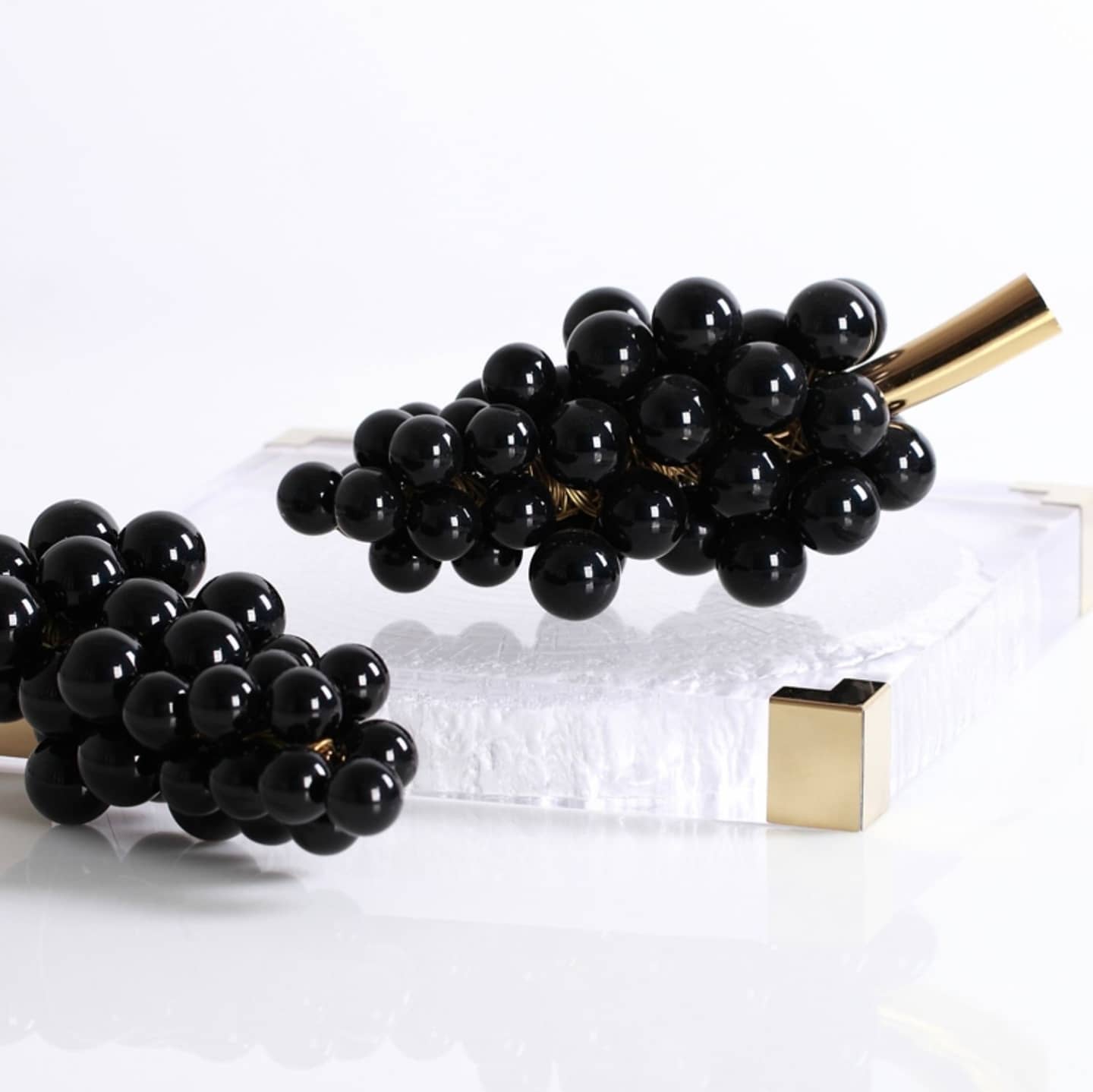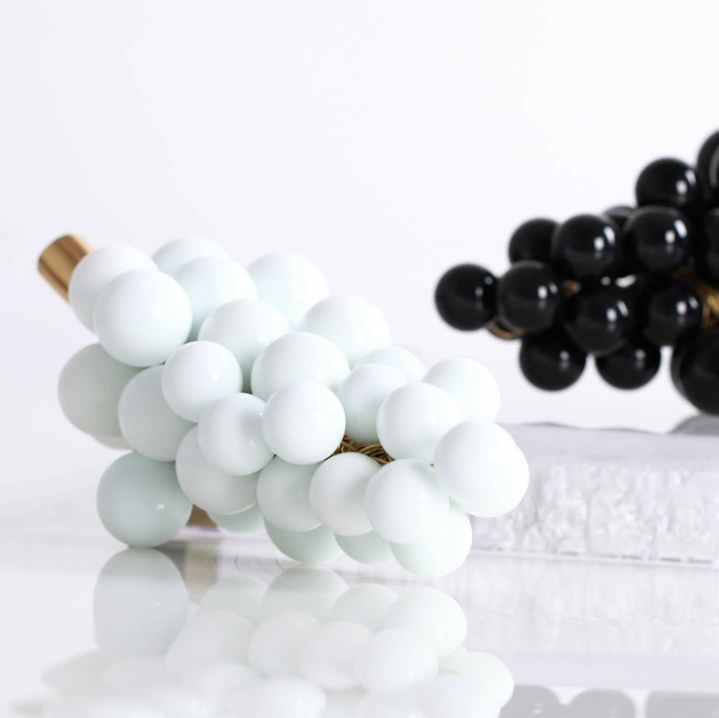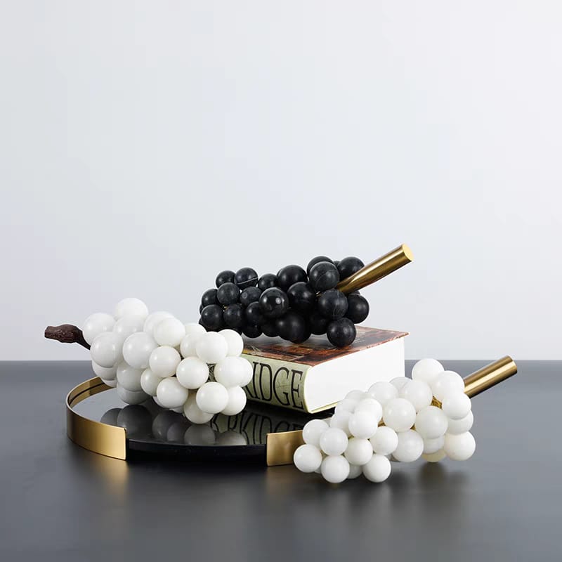 Декоративные гроздья винограда! Прекрасный декор, с невероятно широкой областью применения. Ведь виноград, это ведь ещё и вино. Чёрная гроздь – с ягодами из обсидиана, а белая – из чистейшего мрамора.