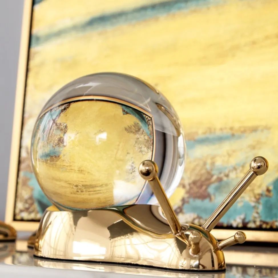 Сегодня у нас шикарное предложение – шар из чистейшего хрусталя, в сочетании с благородной латунью. Превосходная улитка, которая внесет в интерьер яркую и даже немного таинственную нотку. Размеры – на фото.