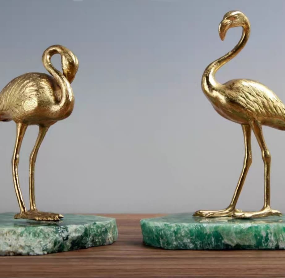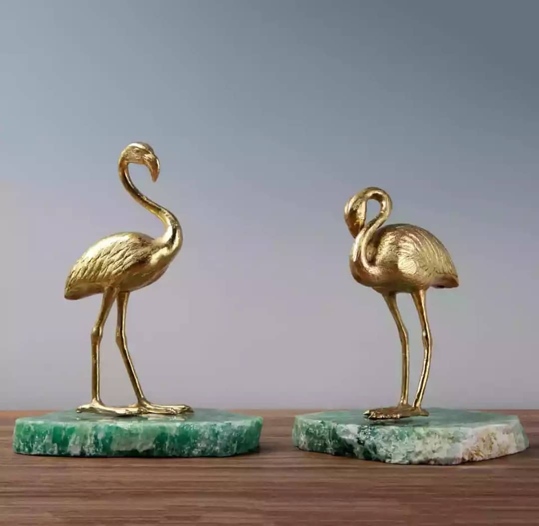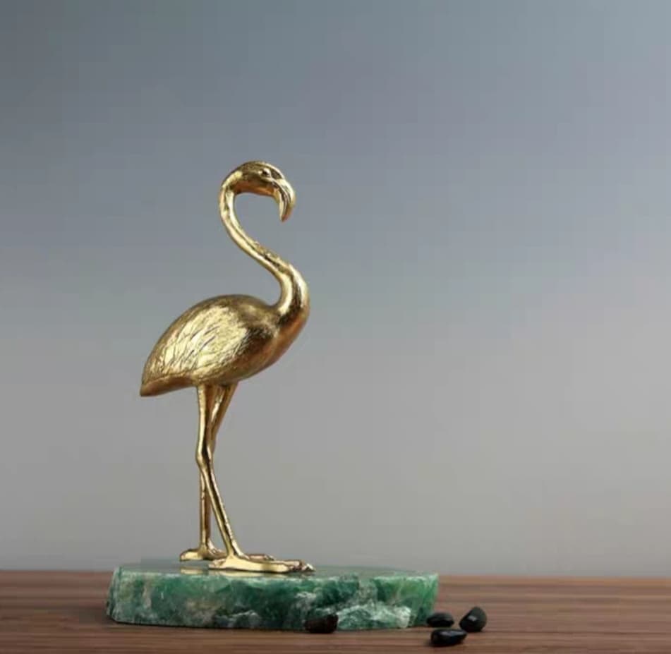 Статуэтка Фламинго из латуни на подставке из флюорита