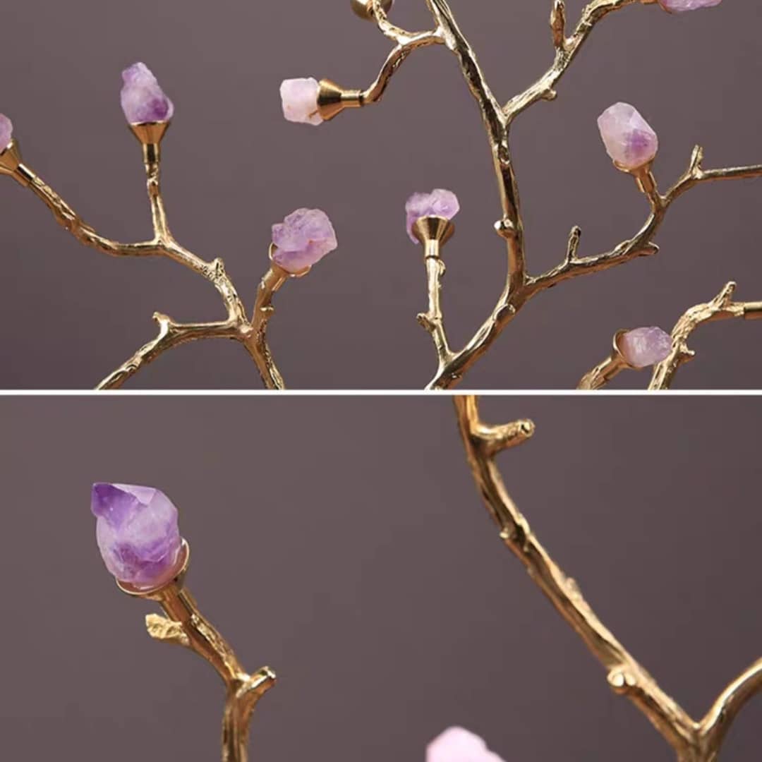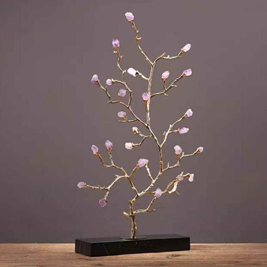 Статуэтка Денежное деревце с кристаллами аметиста на мраморной подставке