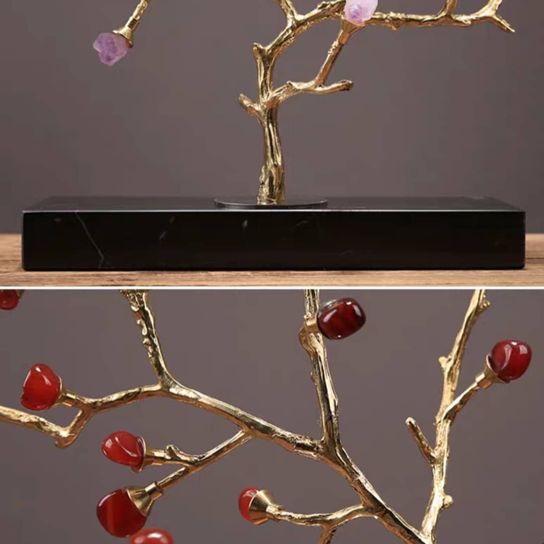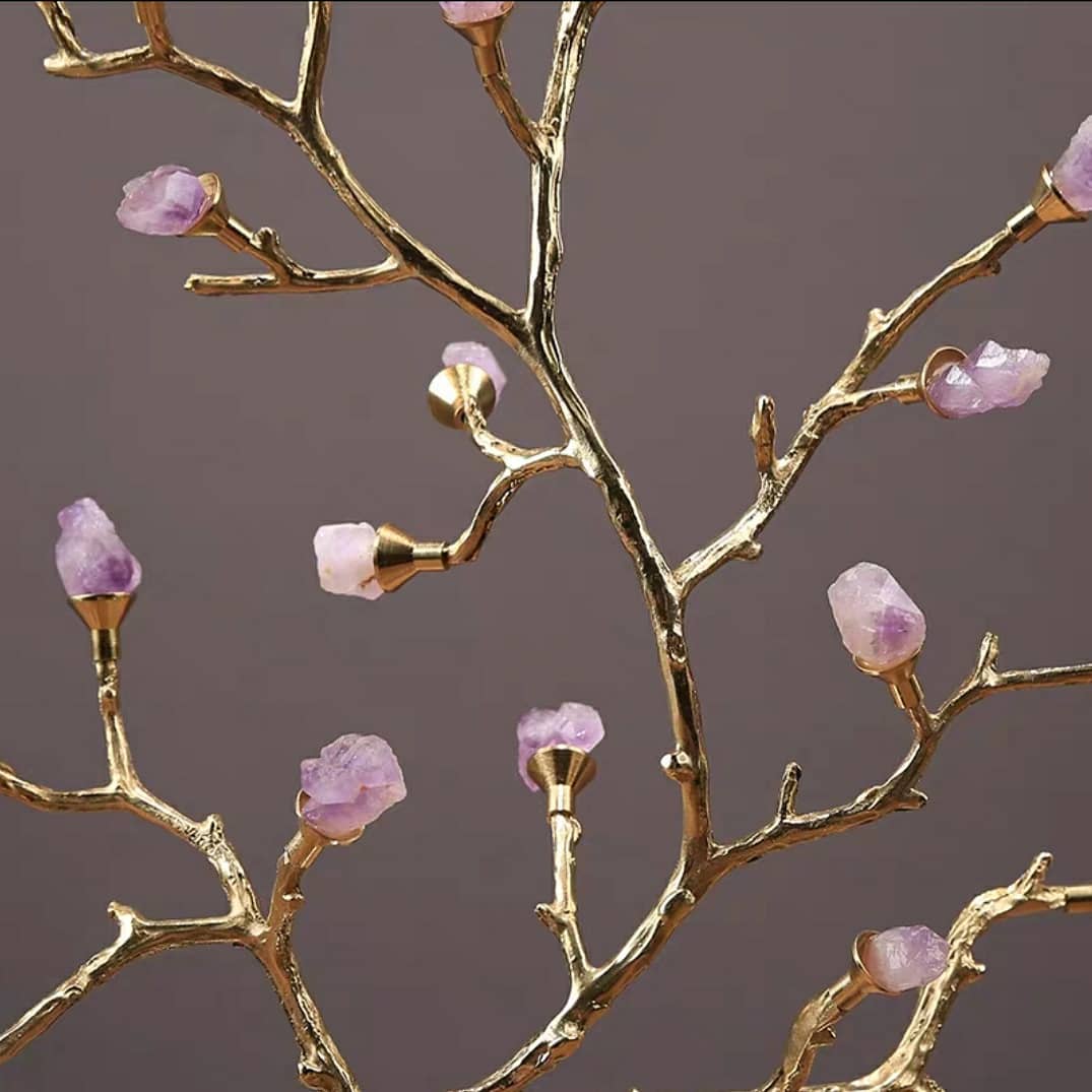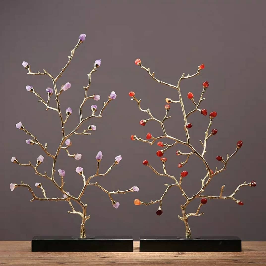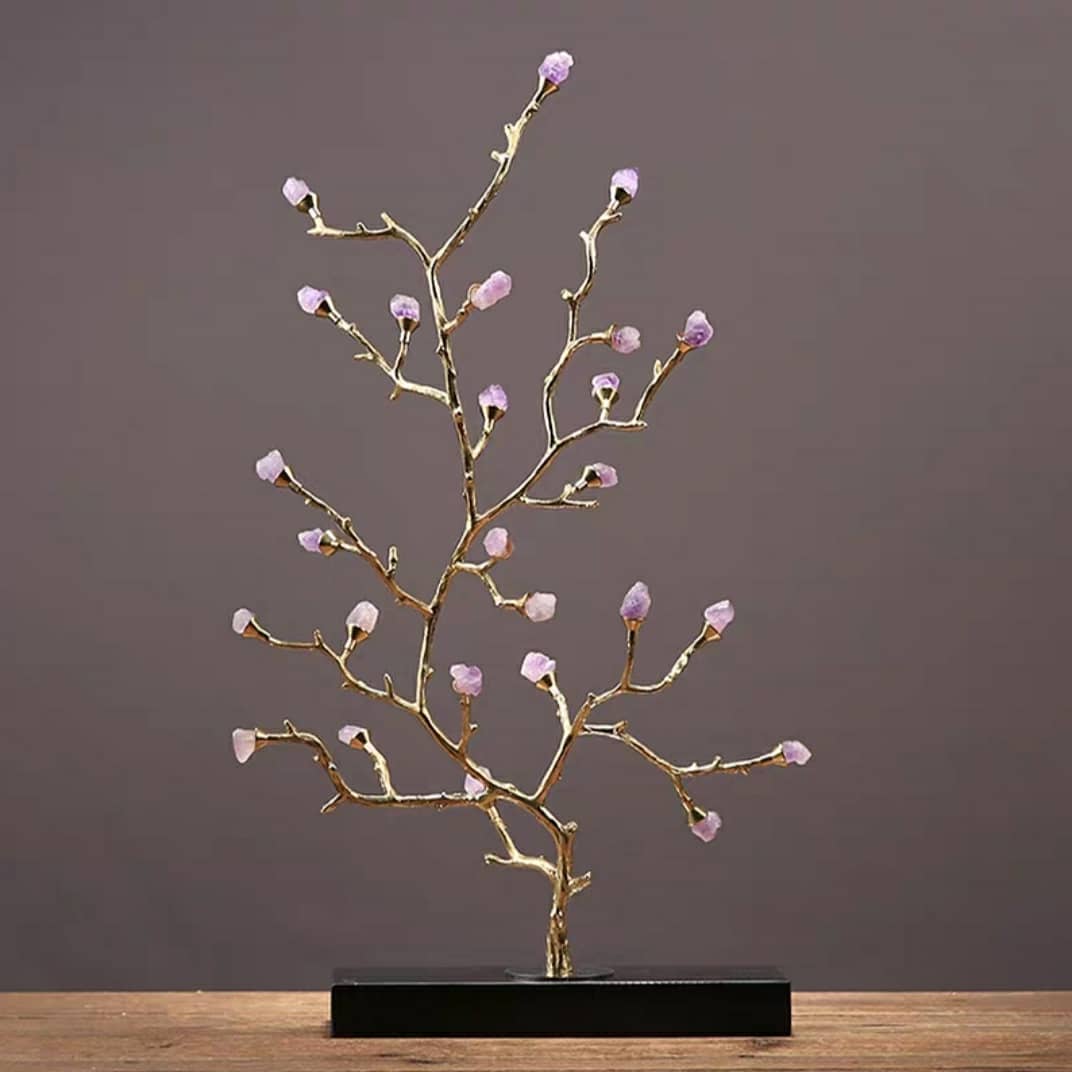 Сегодня у нас пополнение – декоративные деревья, которые часто называют «денежными». Ствол и веточки из благородной латуни великолепно сочетаются с отборными кристаллами аметиста и красного агата.