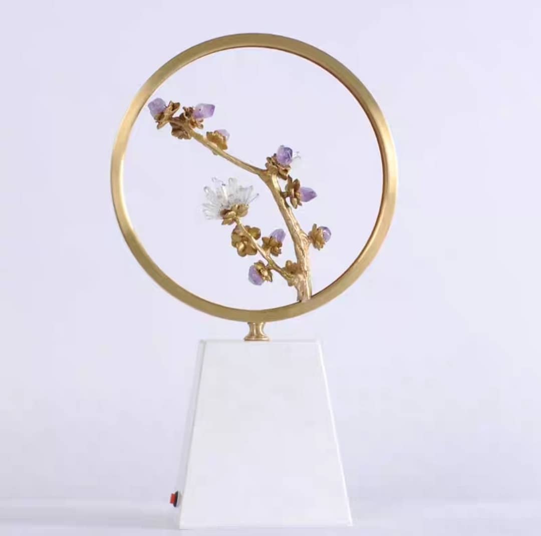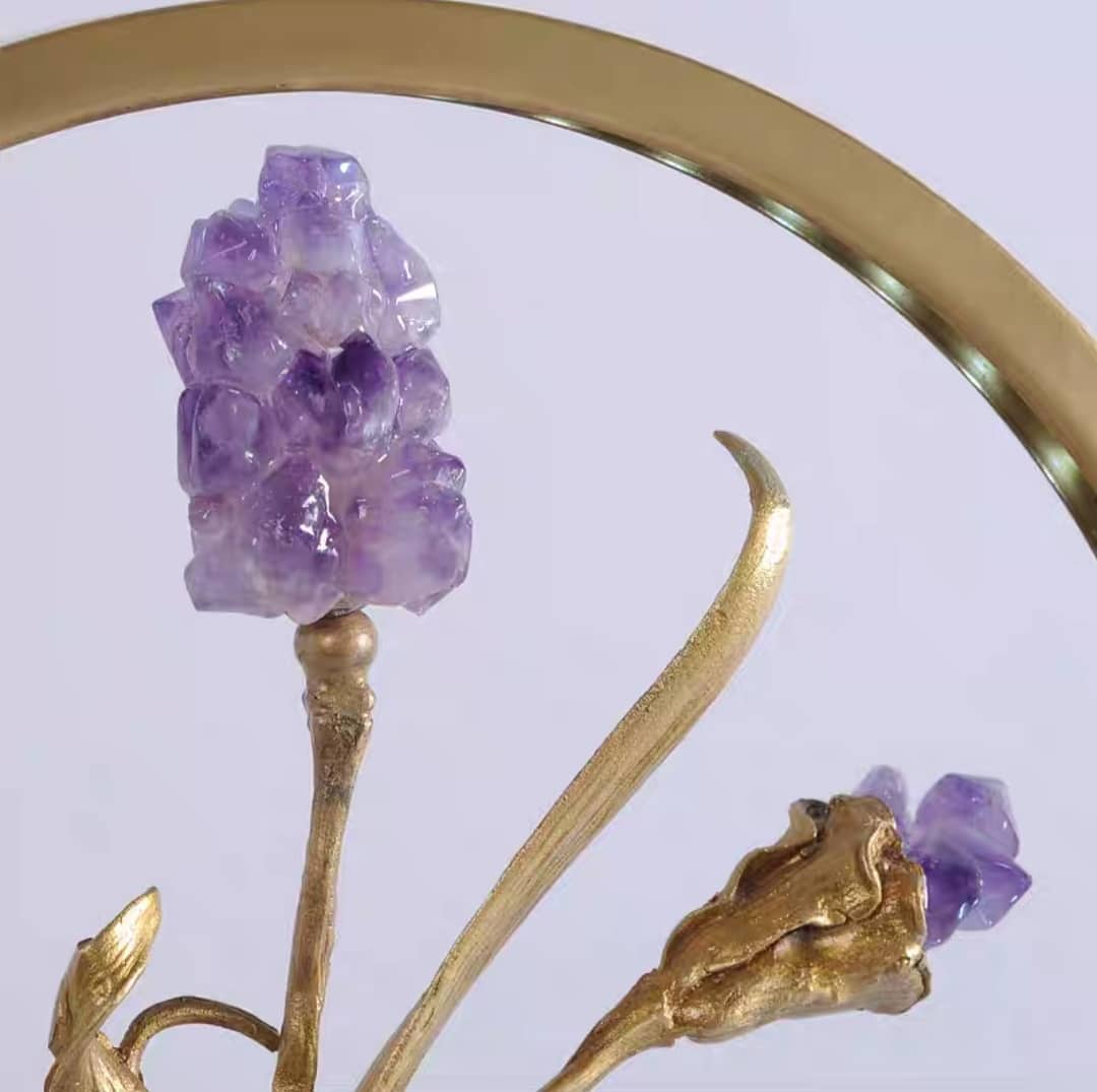 аметист, кварц, флюорит, латунь, мрамор |