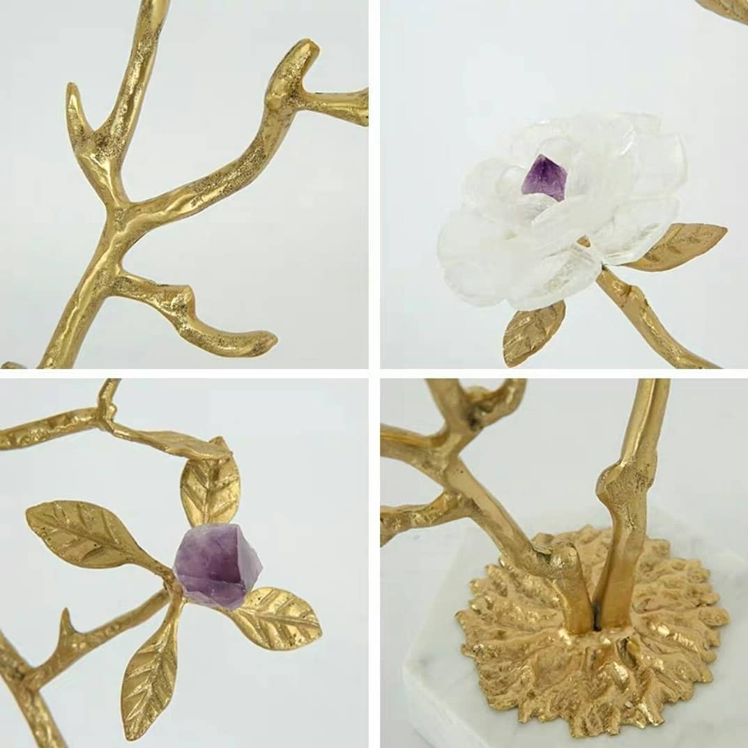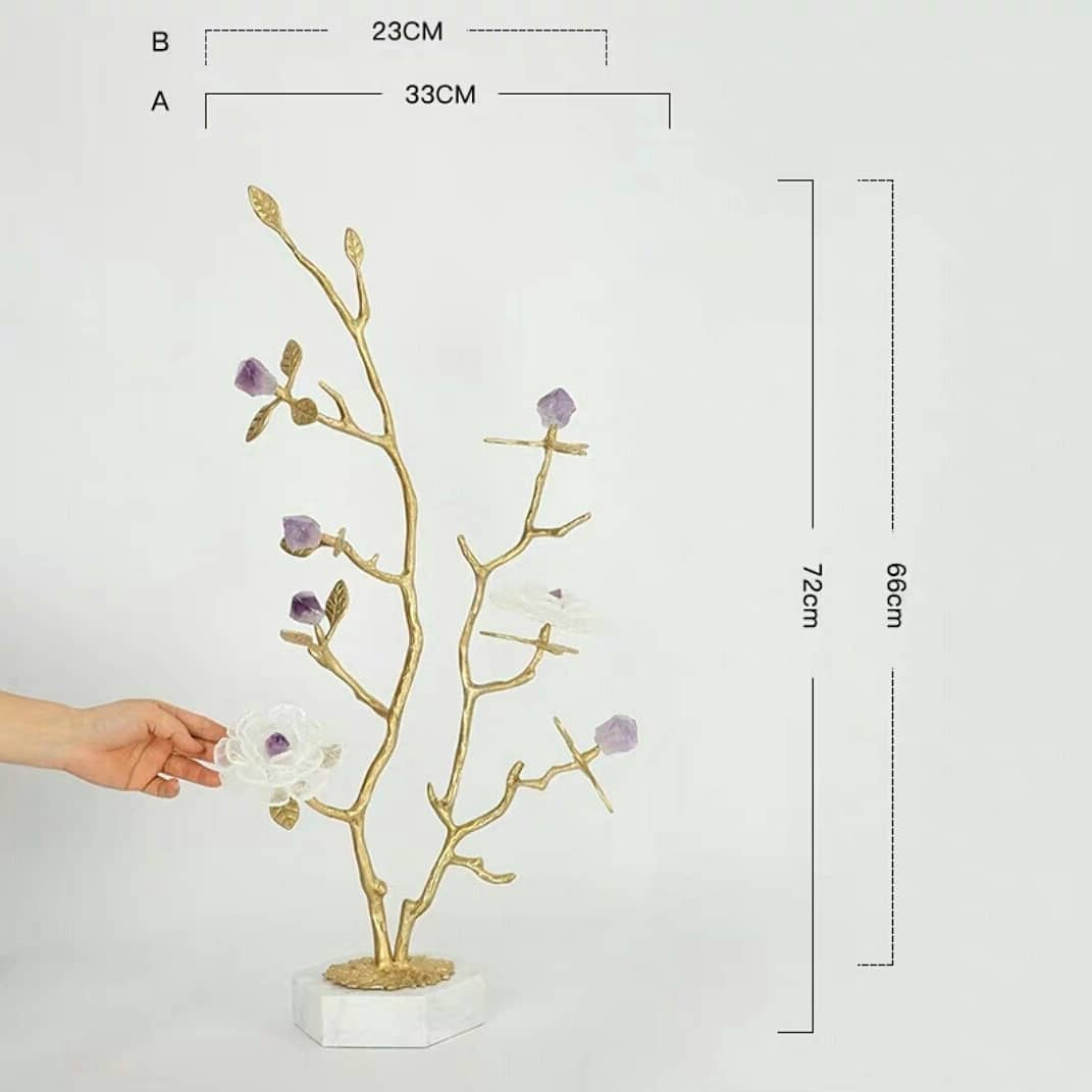 Статуэтка Деревце с цветами аметиста и кварца на шестигранной мраморной подставке S