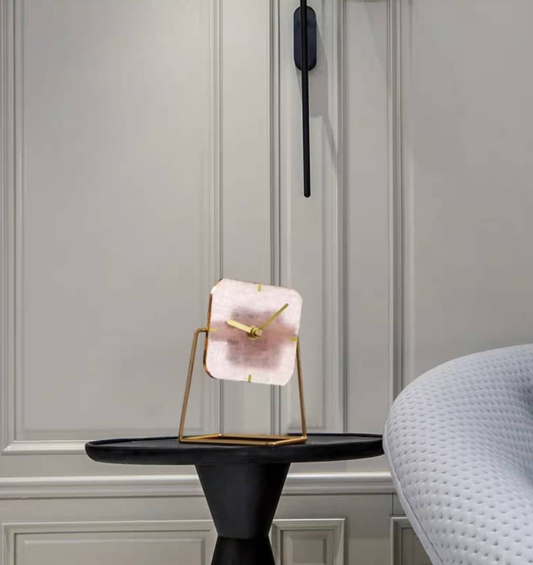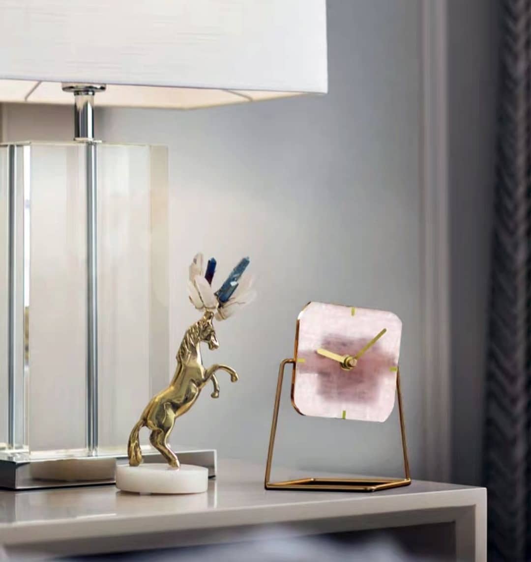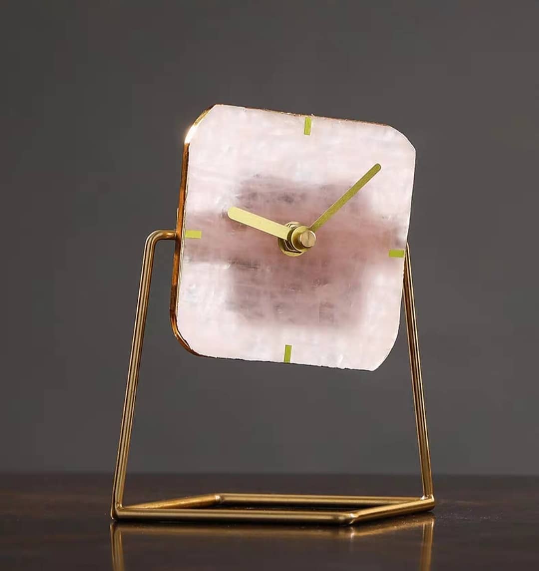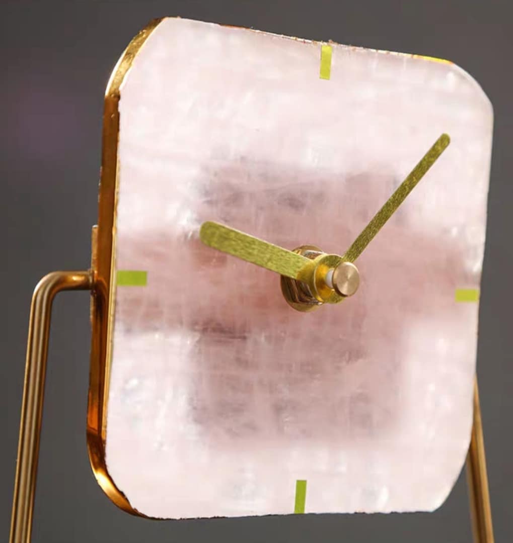 Статуэтка-Часы на срезе розового кварцита на подставке