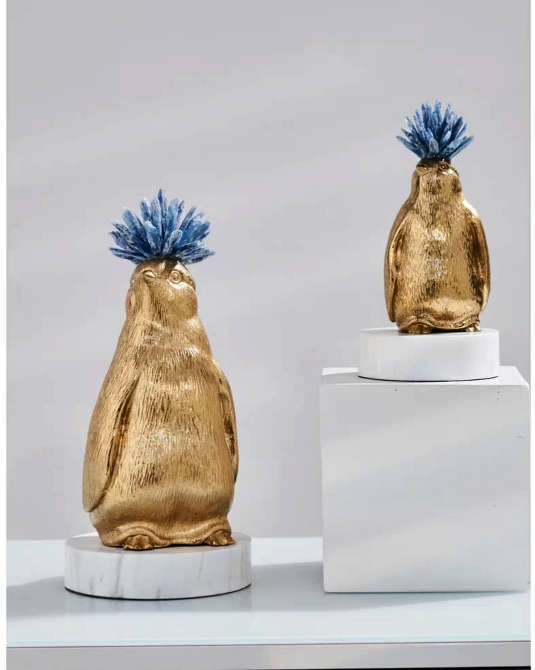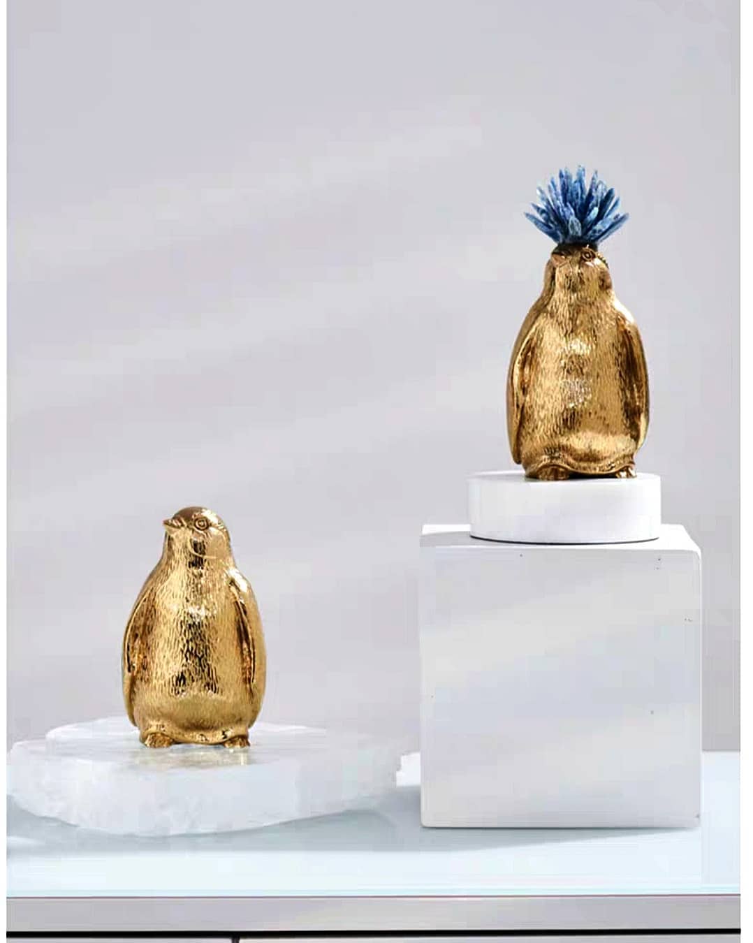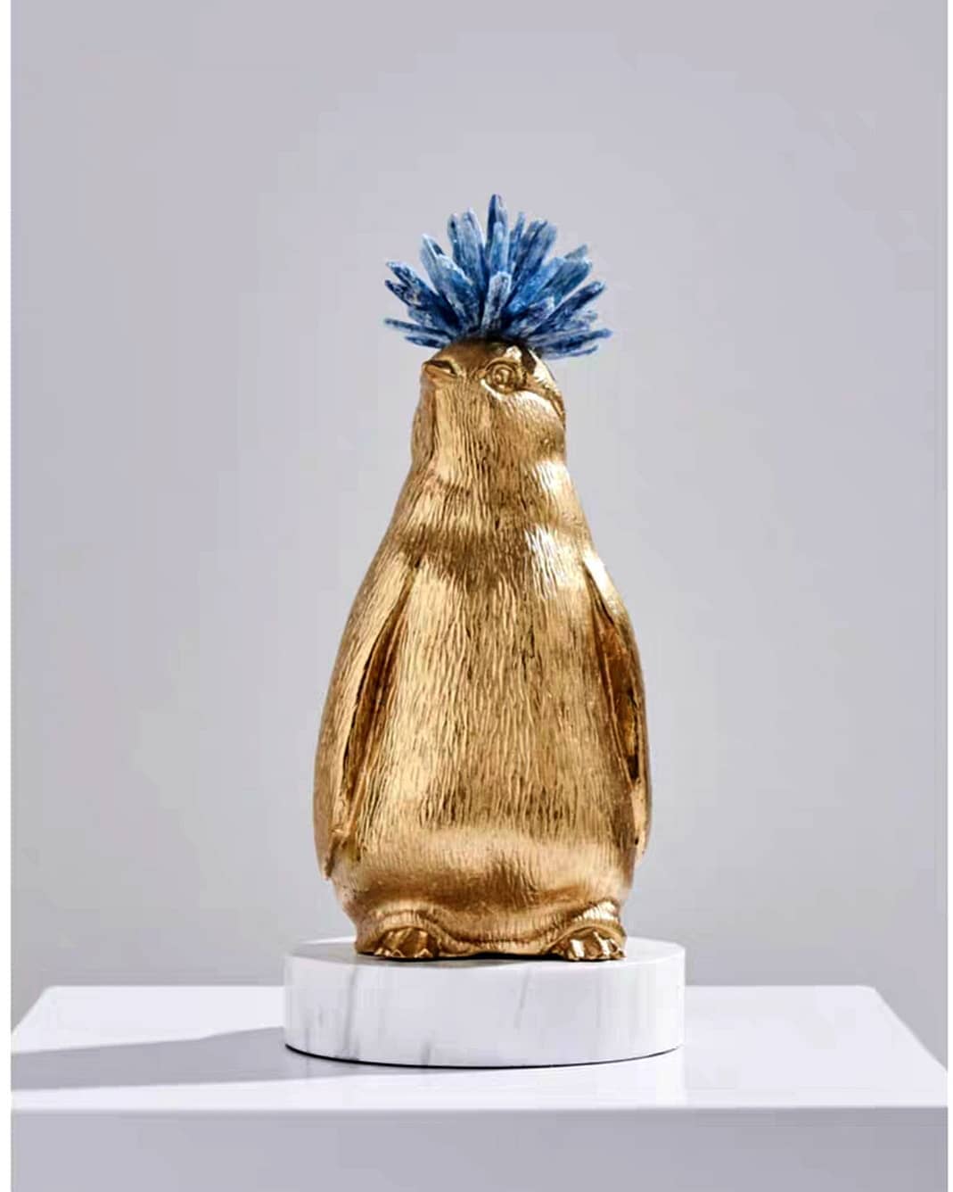 Статуэтка Пингвин золотистый с хохолком на цилиндрической подставке