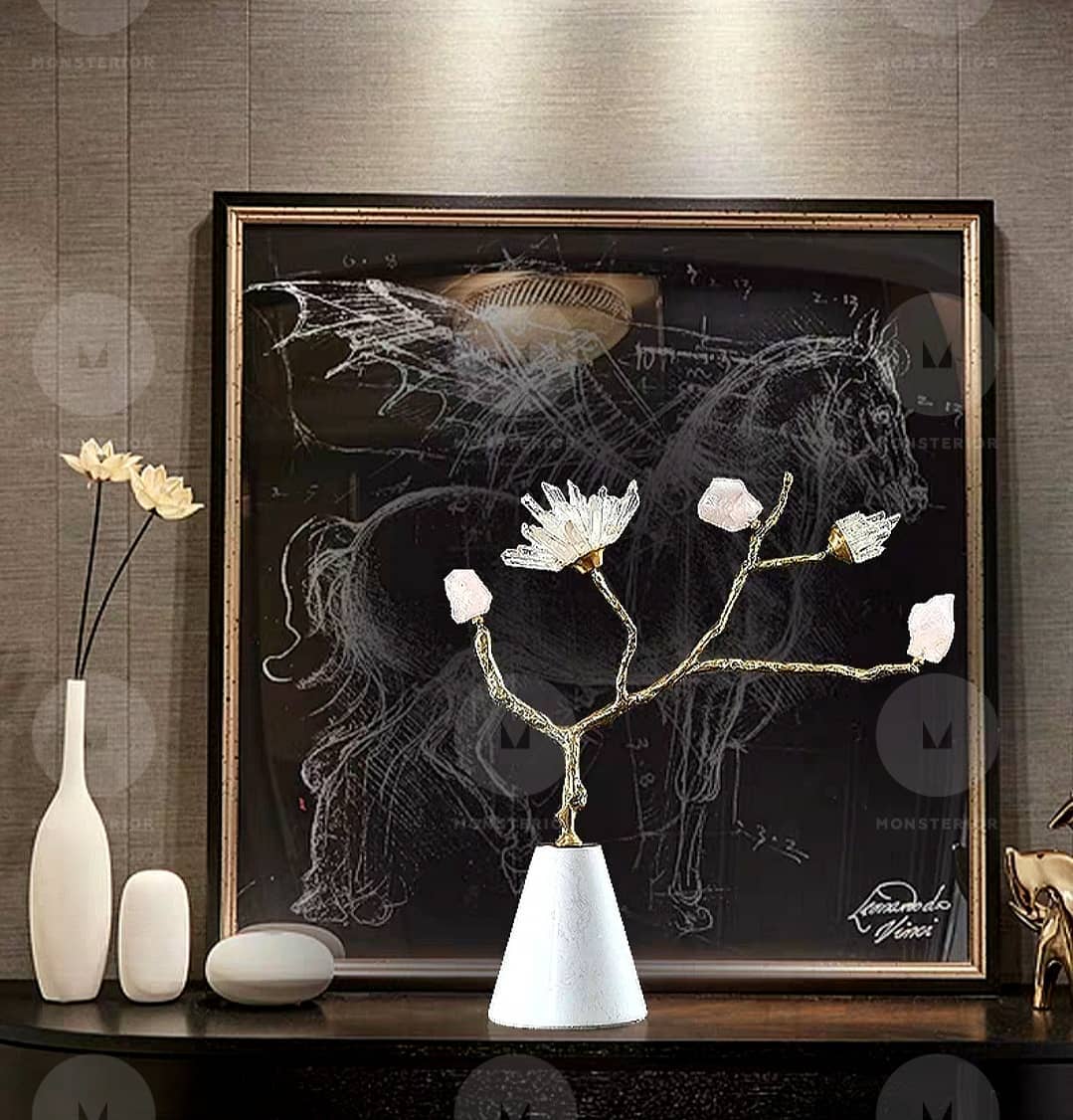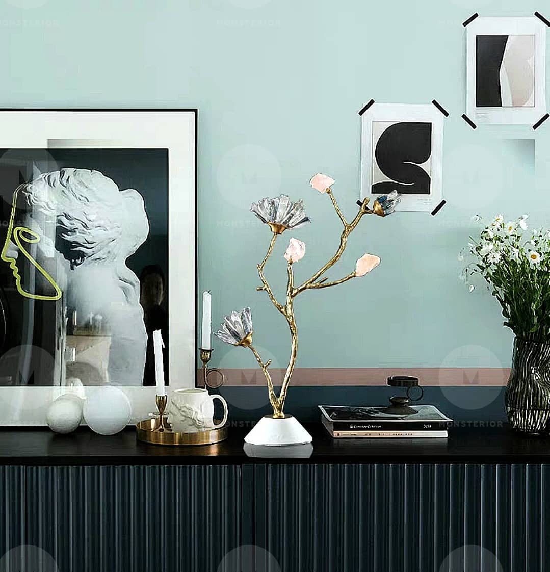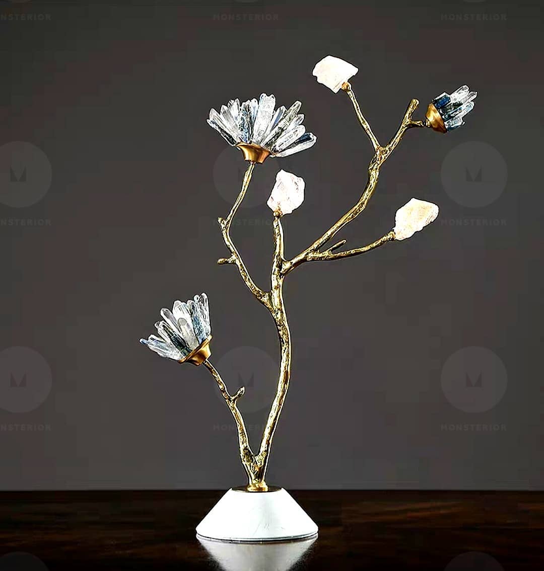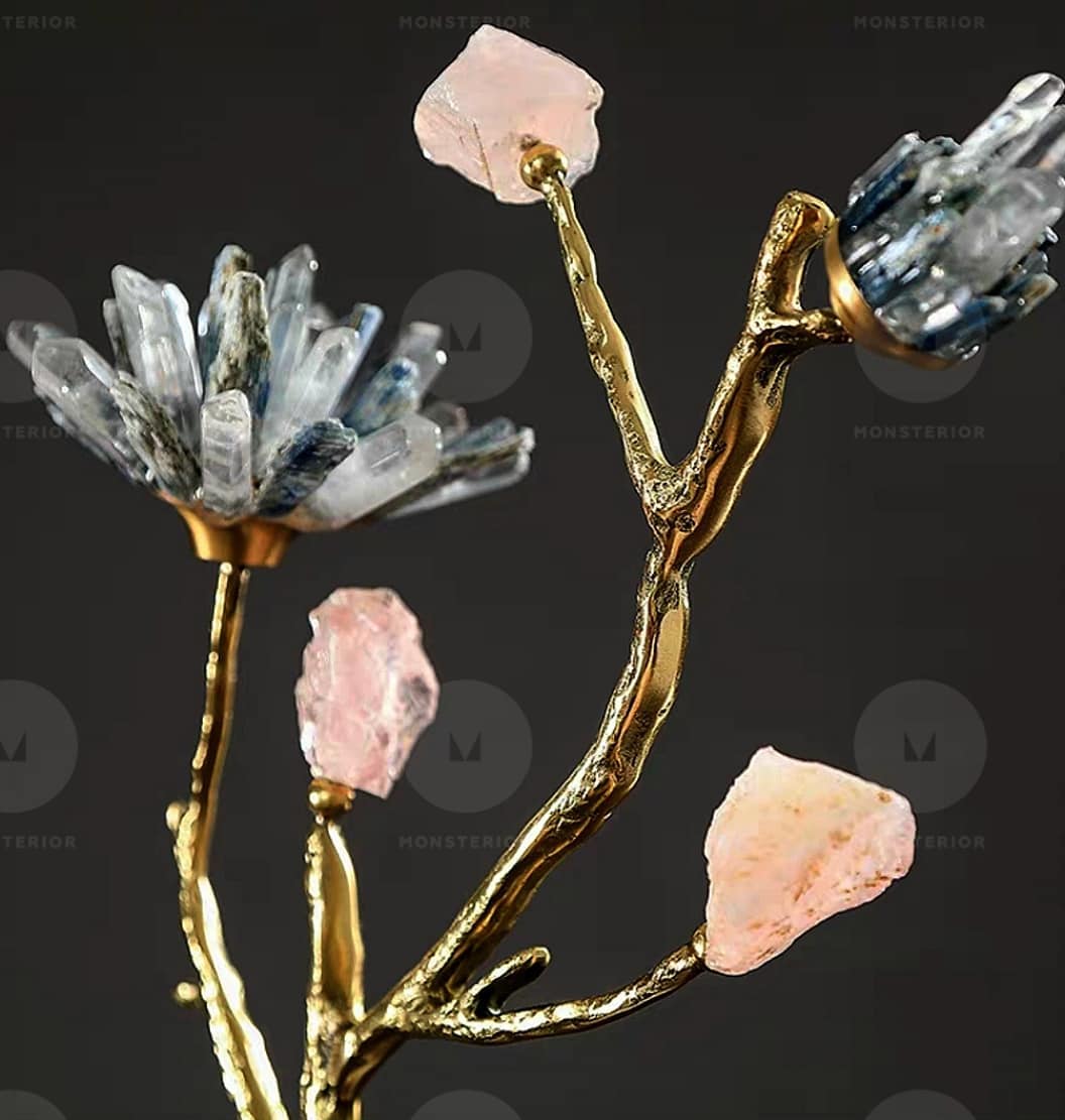 Статуэтка Деревце медное с кристаллами горного хрусталя на мраморной подставке