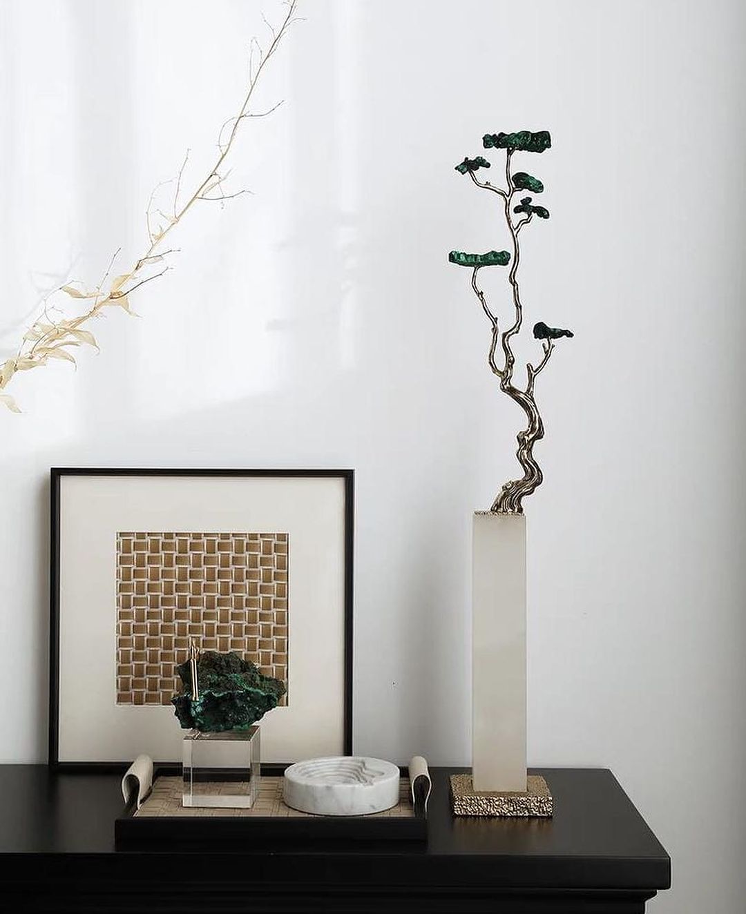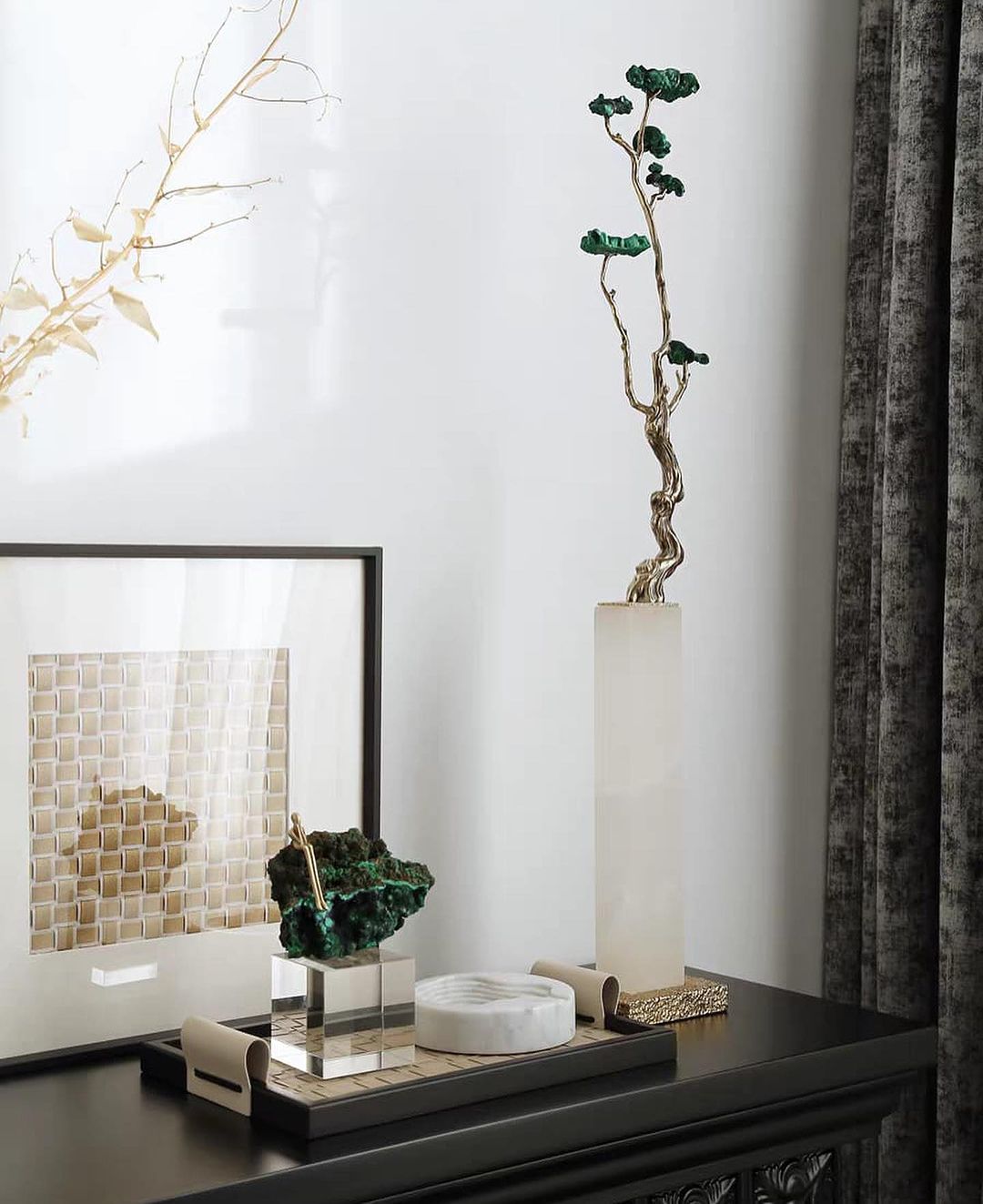 Очаровательный декор с натуральным малахитом, самоцветом, который традиционно считается воплощением стихии Земли. Красивое решение для современного интерьера. Отличный выбор для подарка родным и близким людям, особенно на новоселье.
