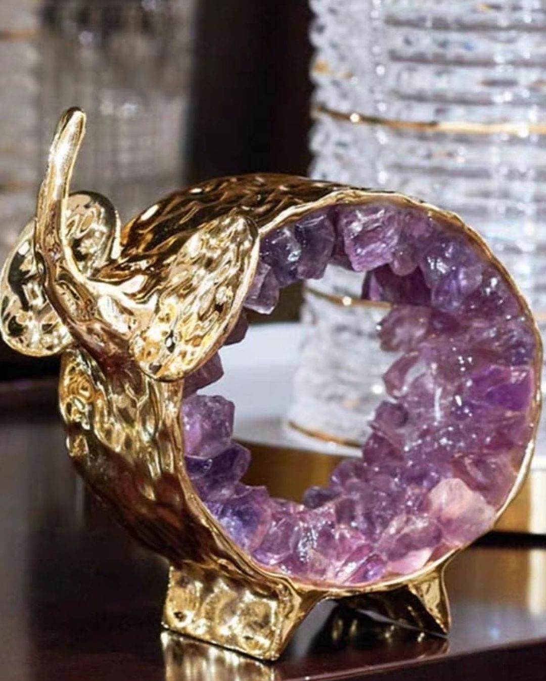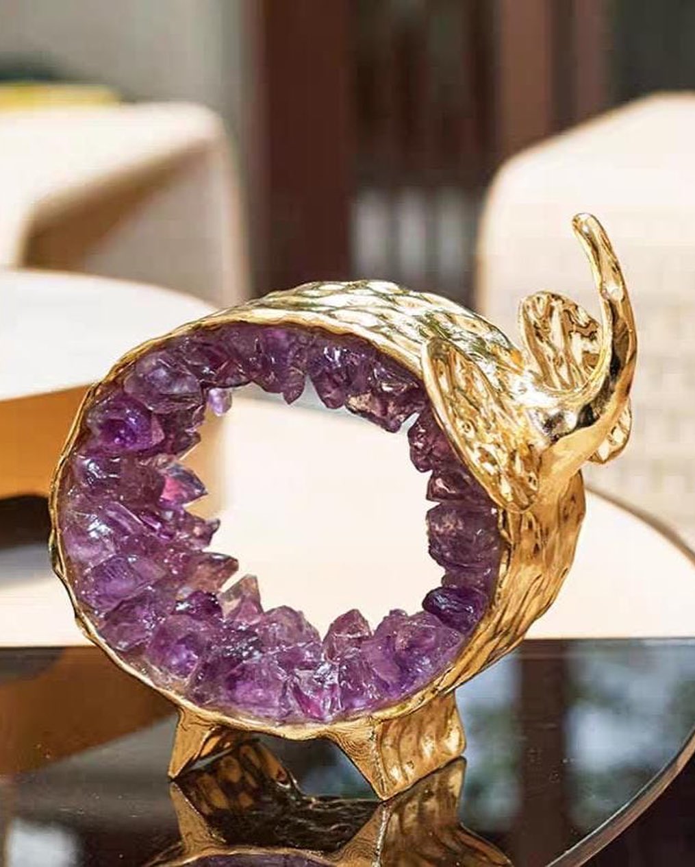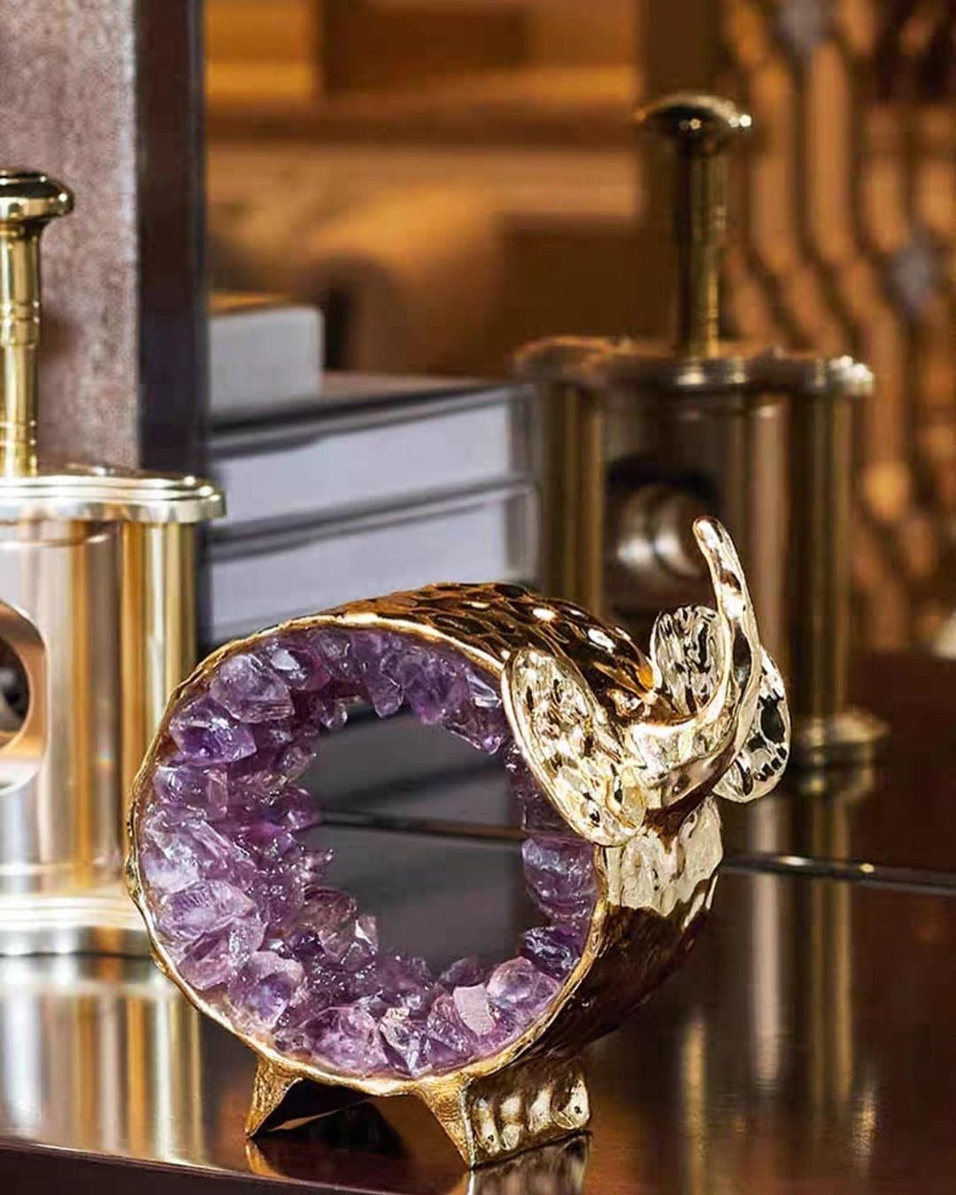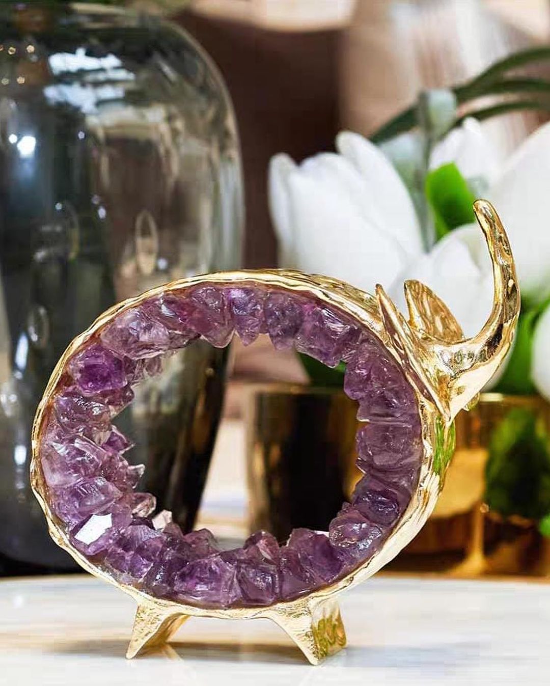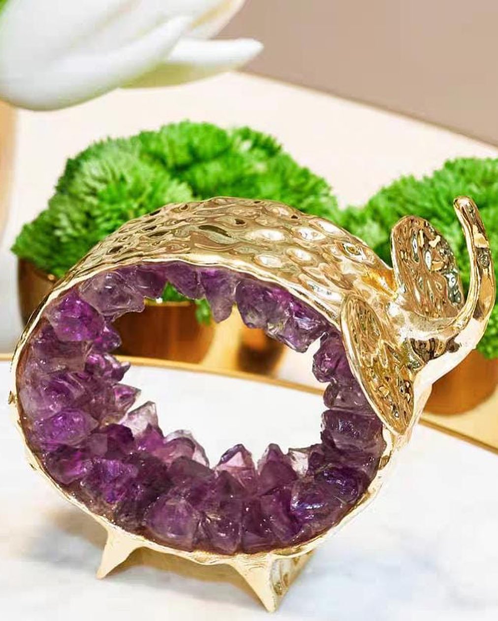 Стильные и яркие слоники Monsterior Gems. Оригинальный и классный декор из настоящих кристаллов отборного аметиста и благородной латуни.
