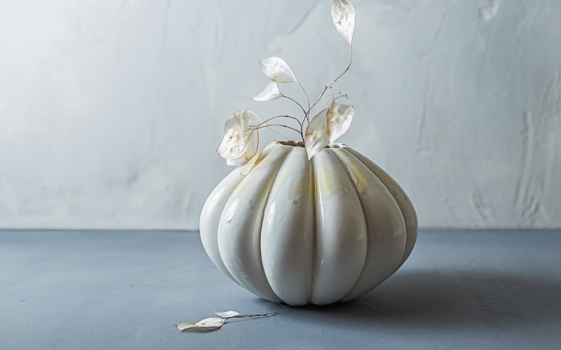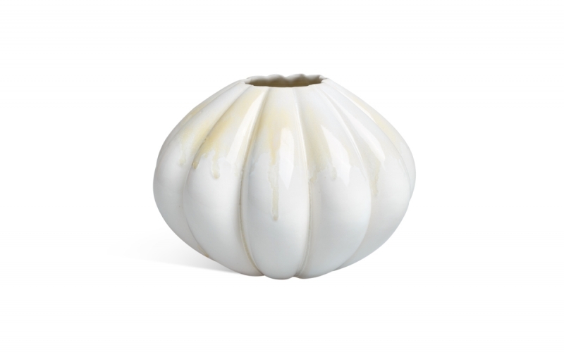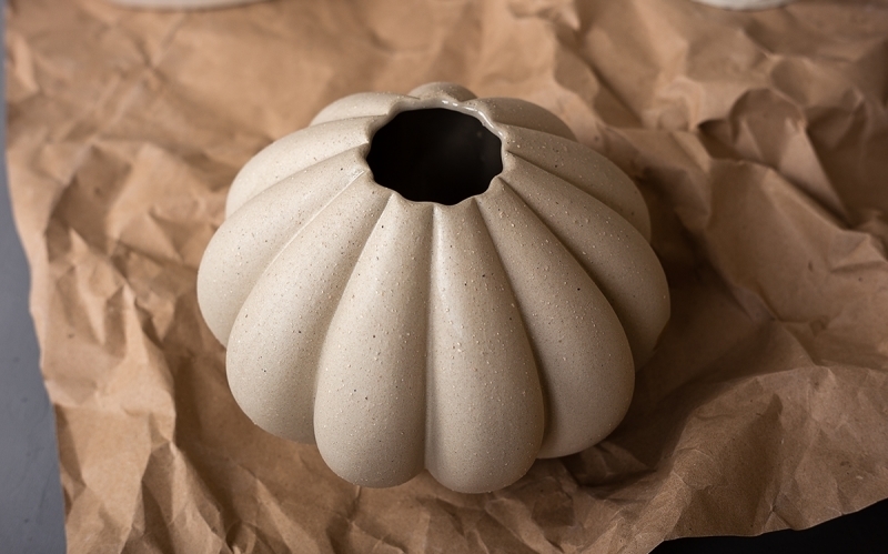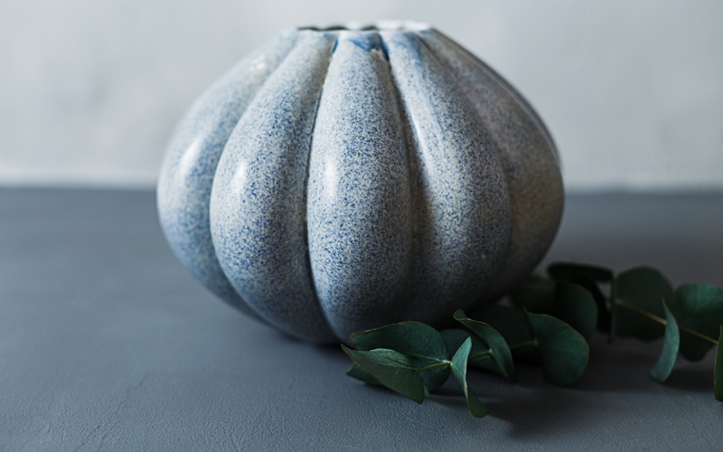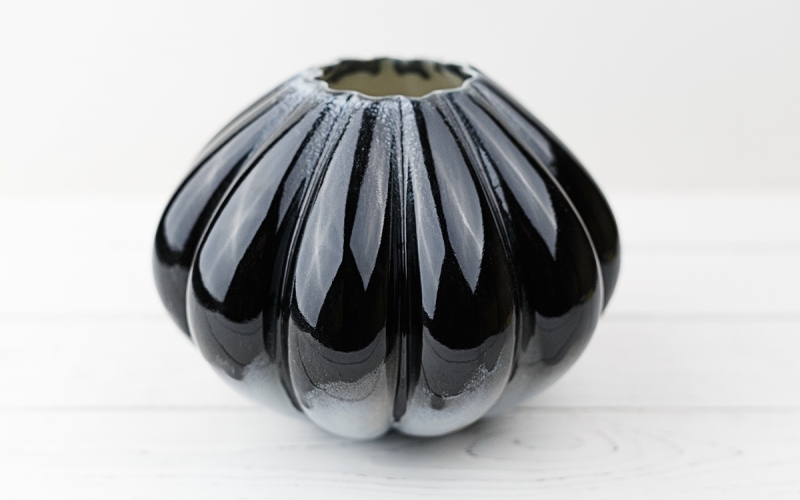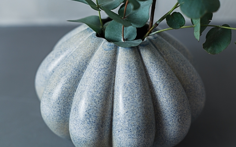 Уютная круглая ваза с множеством граней-долек привнесет лаконичности в атмосферу помещения.