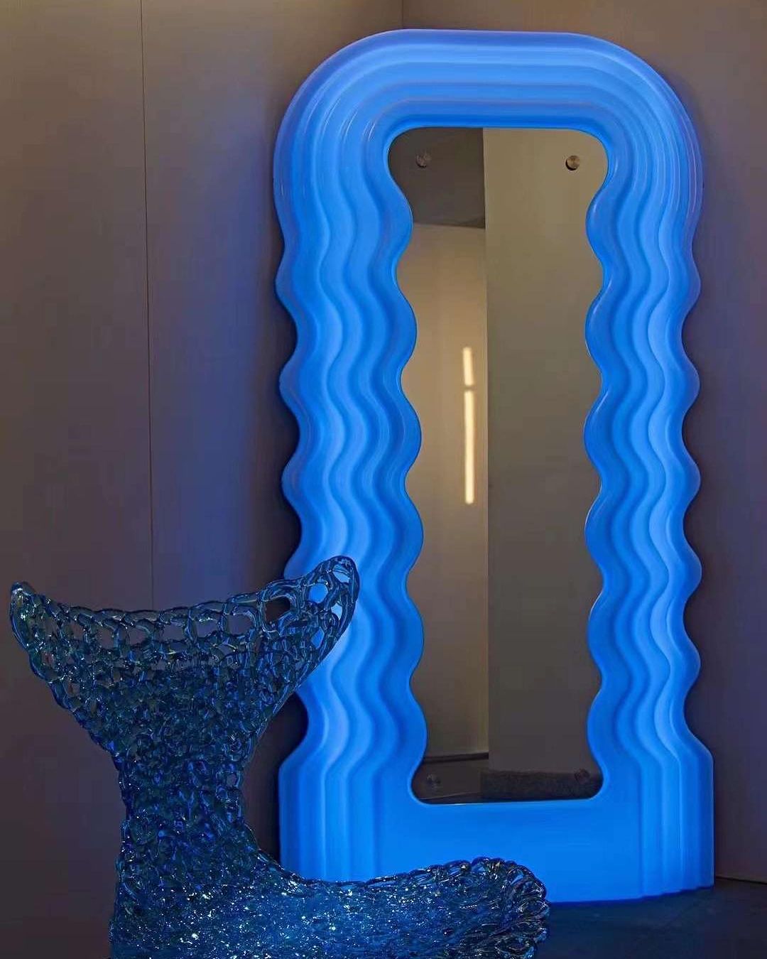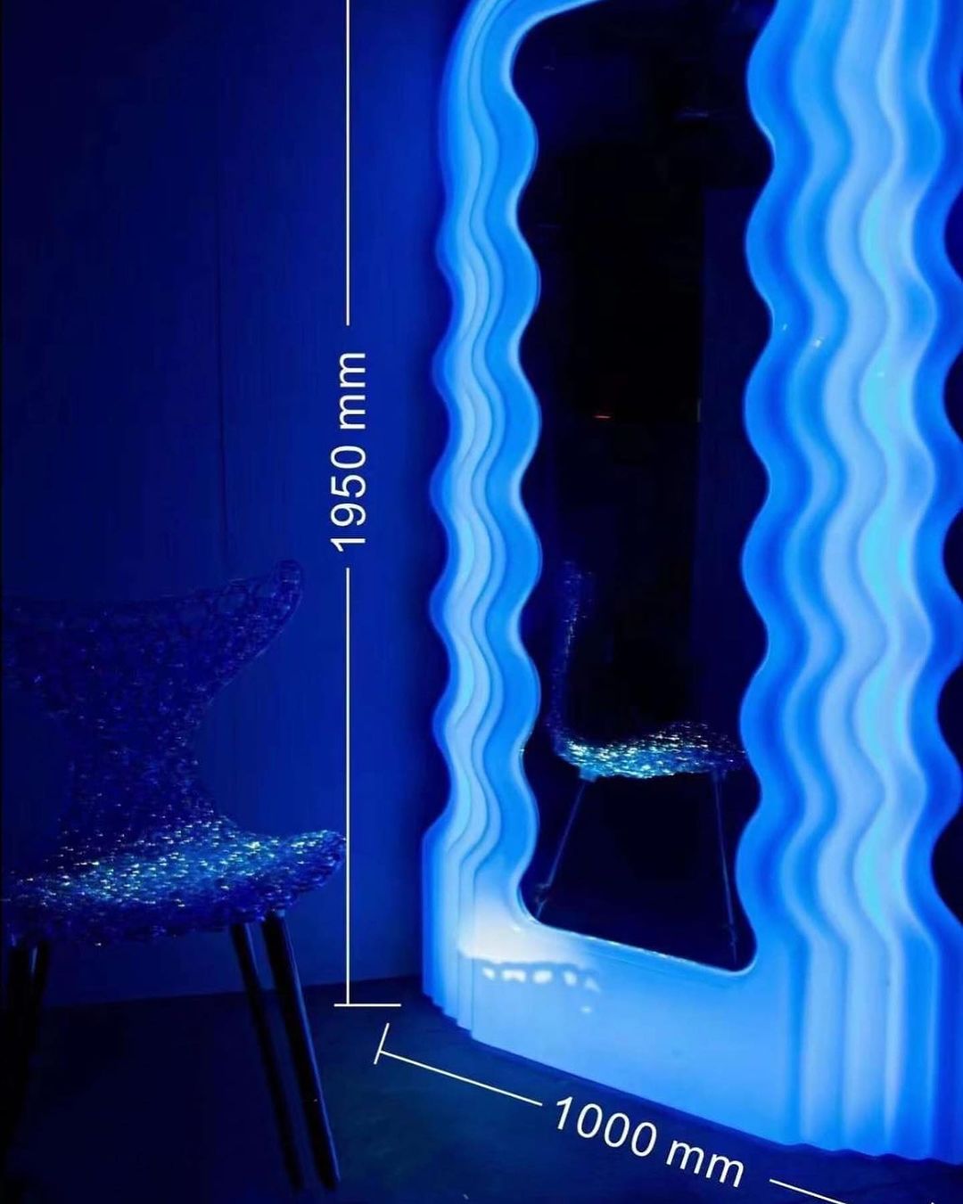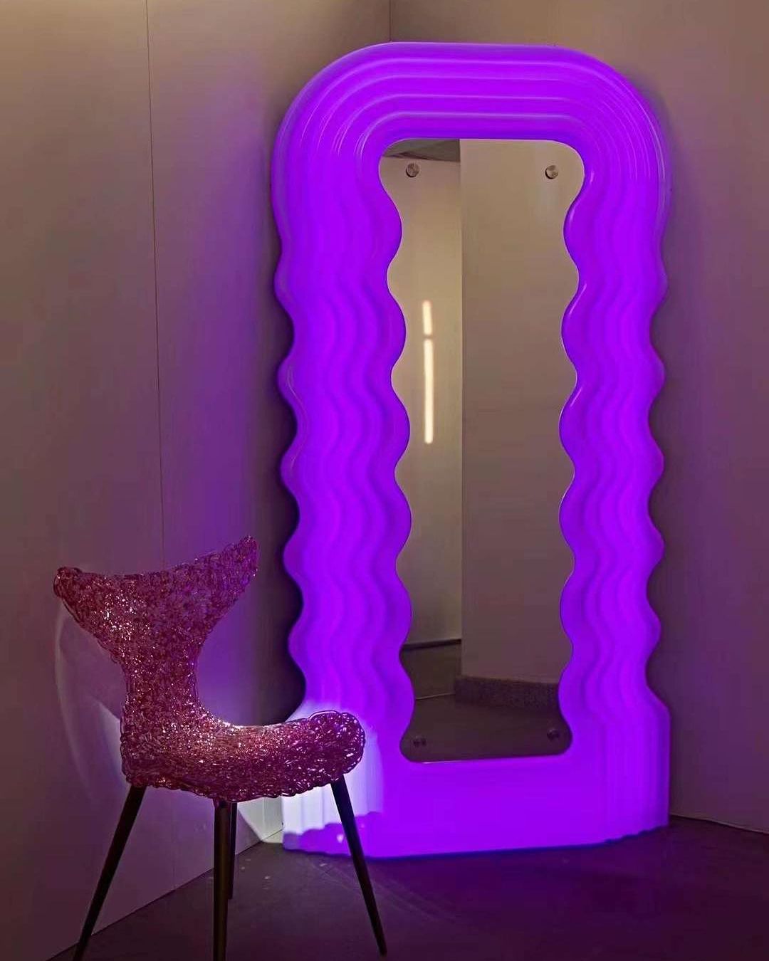 Роскошное полноростовое зеркало Monsterior Shop. Классное решение для современной прихожей, спальни или гардеробной. Корпус с подсветкой изготовлен из акрила разных цветов, на выбор. Размеры на фото.