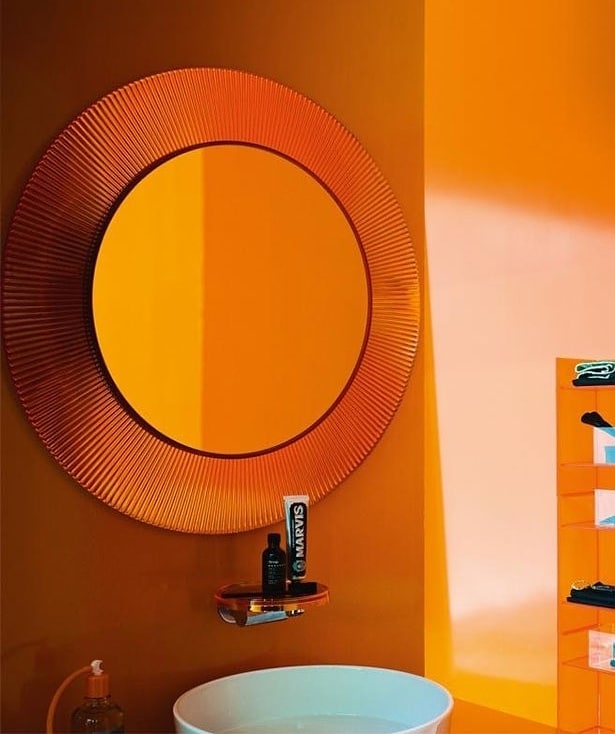 Шикарное настенное зеркало Monsterior Shop из акрила, насыщенное оранжевым цветом, как сочный испанский апельсин. Классная дизайнерская находка, столь актуальная для настоящего времени. Зеркало с мощным психологическим и энергетическим эффектом, ведь оранжевый – это всегда прилив сил, отличное настроение и позитивные эмоции. Бесподобное решение для современного, уникального и стильного интерьера.