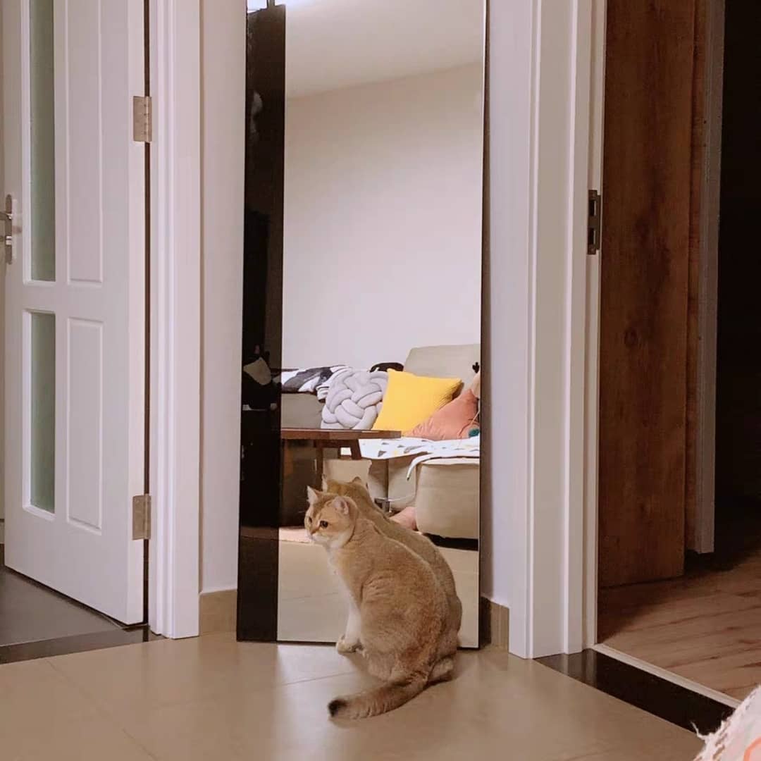 Котики, правда, настойчиво пытаются «пройти» через это шикарное зеркало, в какое-то свое «зазеркалье». Обожают сидеть возле него.