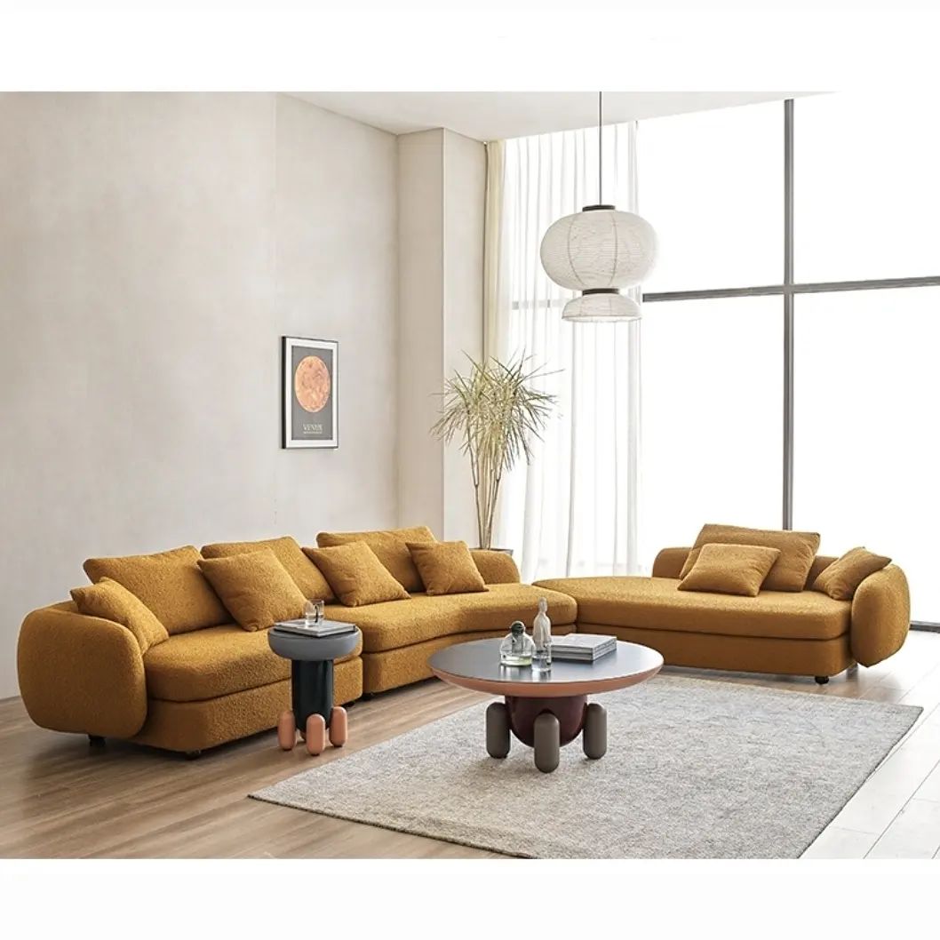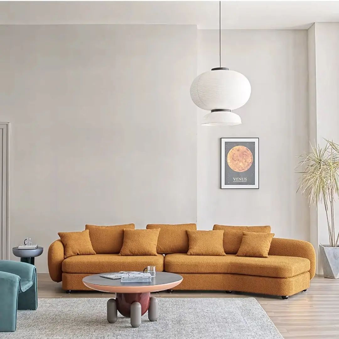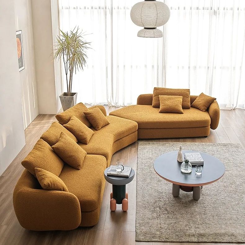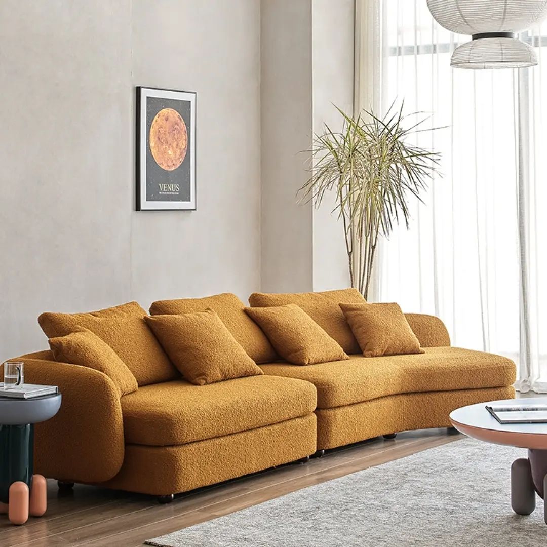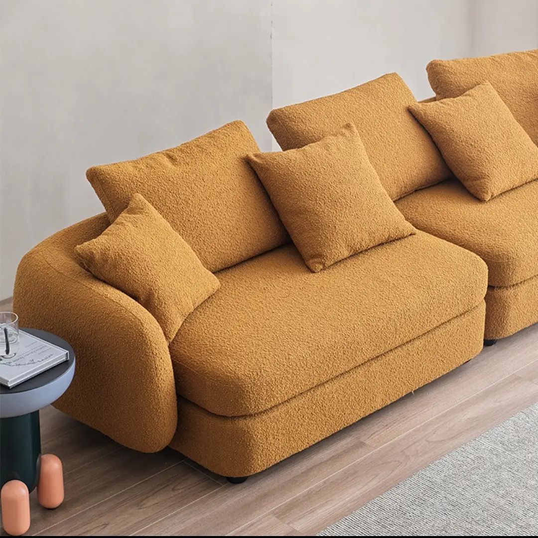 Шикарный дизайнерский диван для стильной и современной гостиной. Красивый, уютный и комфортный. Отличное решение для полноценного отдыха. Массив дерева, обивка – букле. Различные цветовые решения – на заказ.