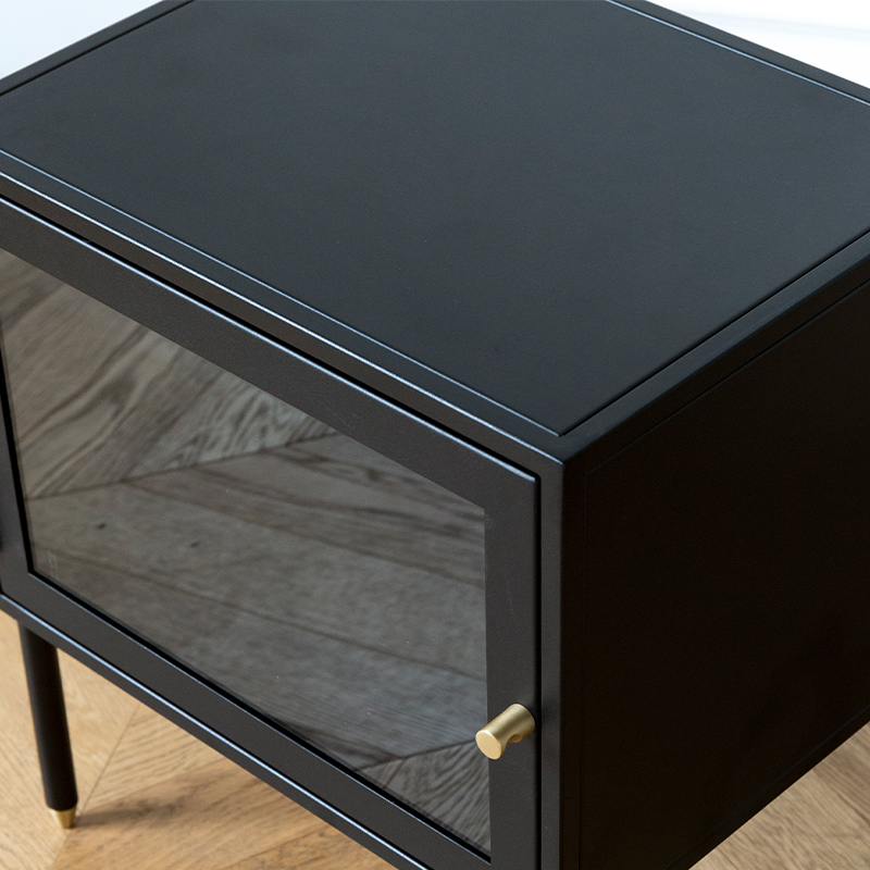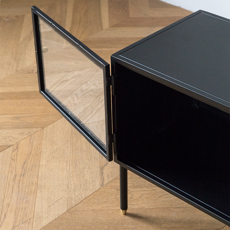 Хай-тек и минимализм – предпочтение отдавайте тумбам с металлическими каркасами. Стеклянные дверцы столешницы дополнят стиль. Используйте как можно меньше лишних деталей.