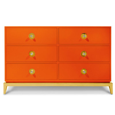 Комод с 6 ящиками выполнен в сочном оранжевом цвете с большими акриловыми ручками.