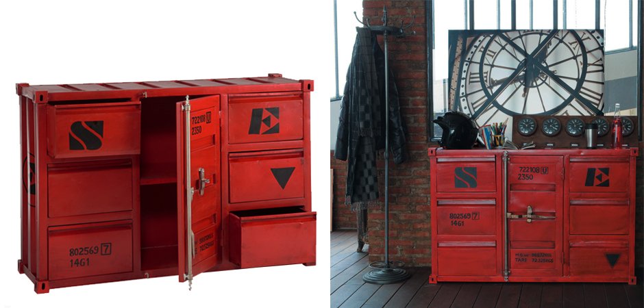 Грубые, но стильные предметы интерьера Sea Container будут отлично смотреться как в кабинете мощного босса, в мужской спальне, так и гостиной комнате соответствующего стиля, а также в шоуруме, или лаунж-зоне.