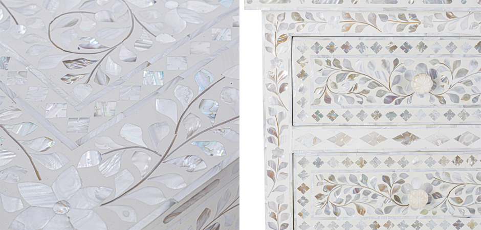 Комод Белый отделка перламутр MOTHER OF Pearl CHEST OF 4 DRAWER