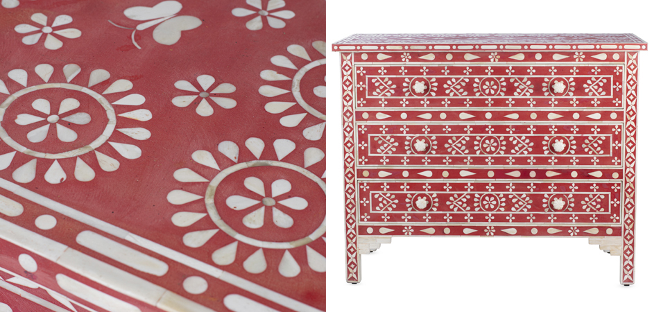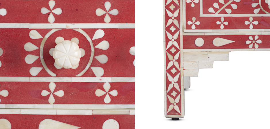 Комод красный орнамент кость BONE CHEST OF 3 DRAWER