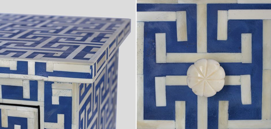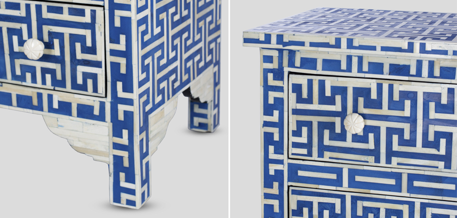 Комод синий орнамент кость Insignia Bone Inlay 3 Drawer Chest
