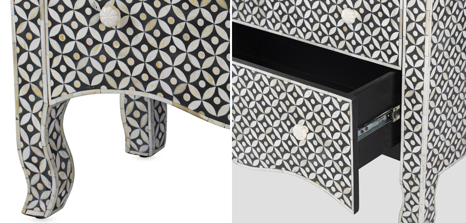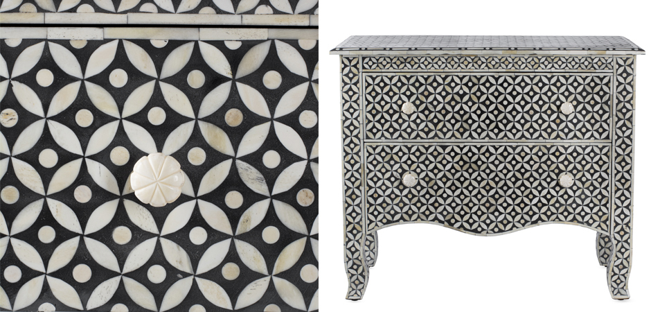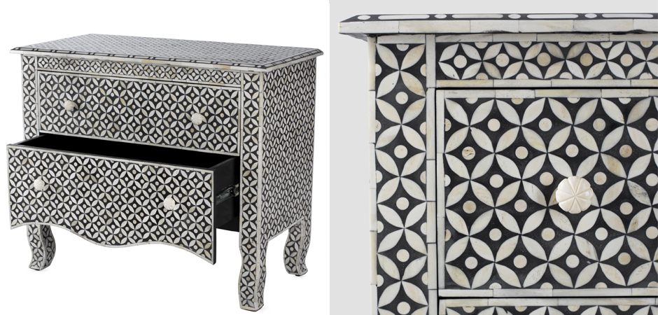 Комод черный отделка кость BONE INLAY CHEST OF 2 DRAWER