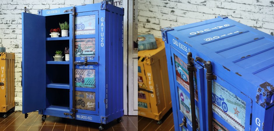 Синяя тумбочка контейнер Blue chest of drawers vintage Sea Container
