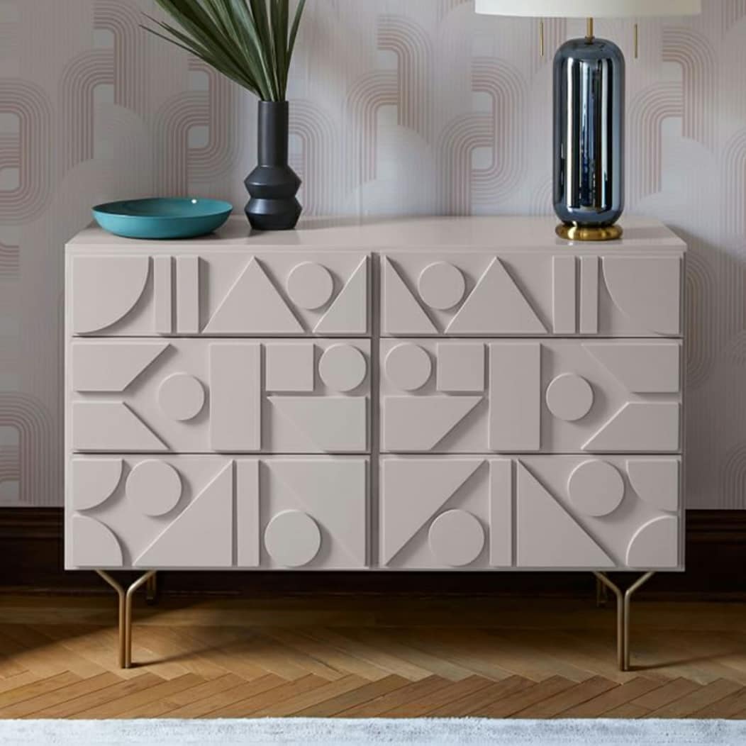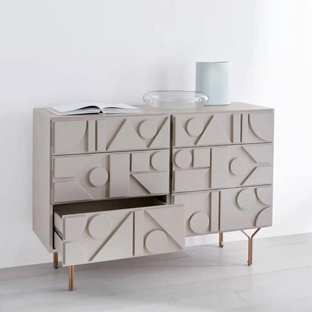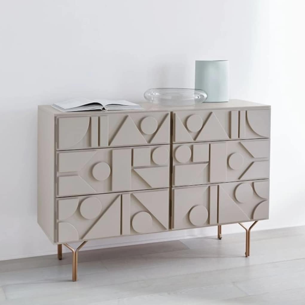 Роскошная тумба-комод с необычным оригинальным фасадом, гармонично украшенным геометрическими фигурами Стильный дизайн, комфорт и отличное качество.