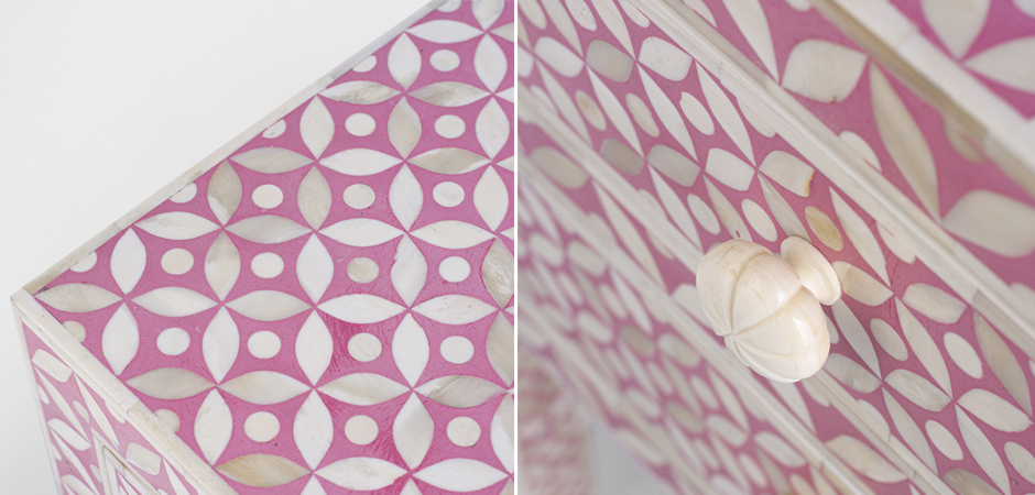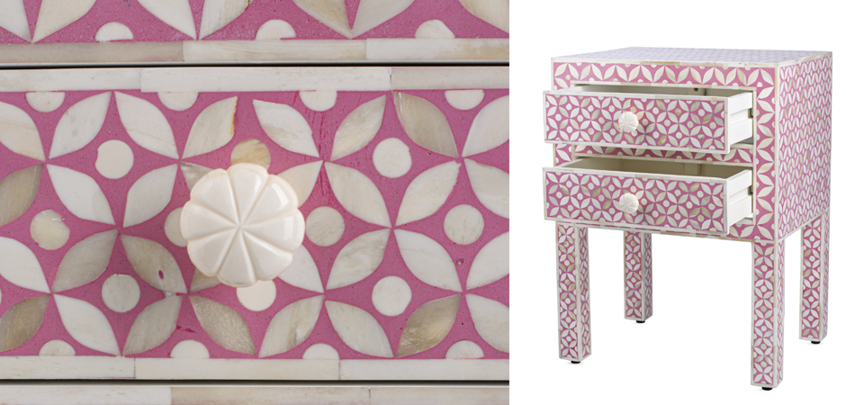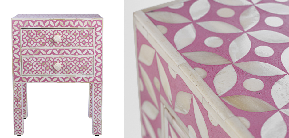 Розовая прикроватная тумба BONE INLAY BEDSIDE CABINET