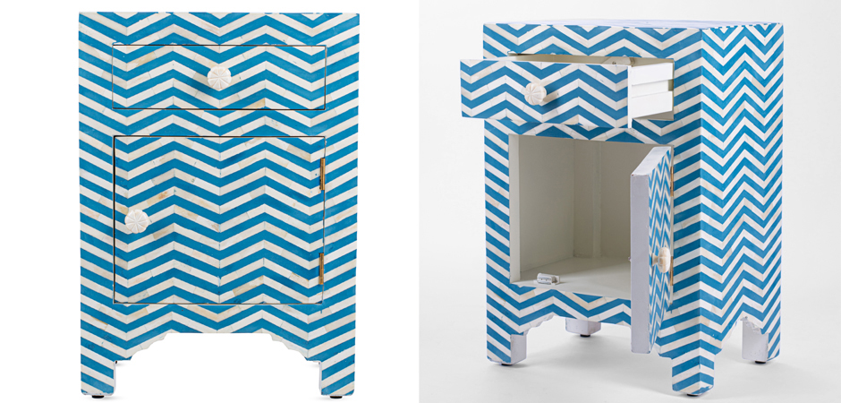Тумба Chevron Bone Inlay Bedside Cabinet in Chevron Pattern 1 DRAWER