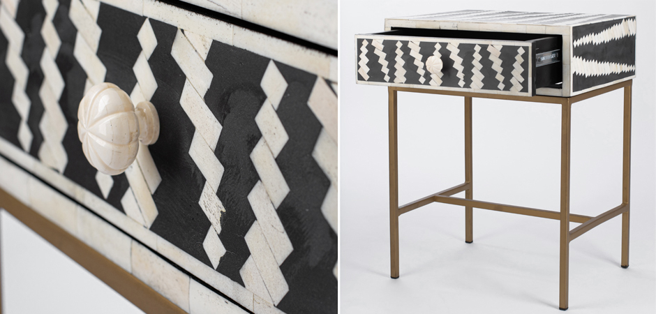 Тумба Mandika Bone Inlay Brass Leg Bedside 1 DRAWER