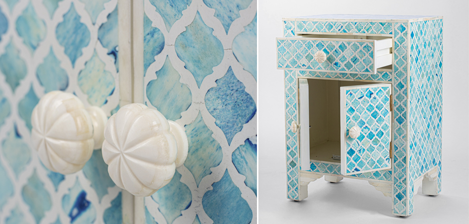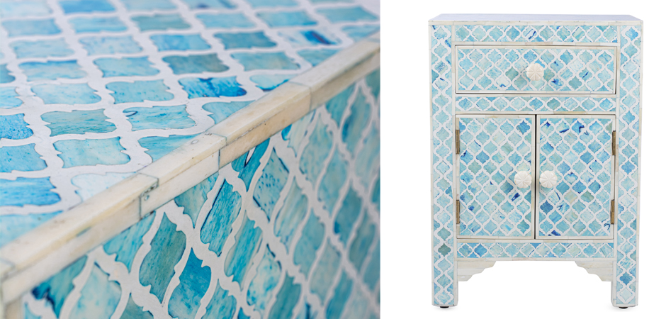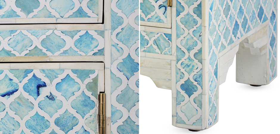 Тумба Ocean Blue Bone Inlay Bedside Cabinet 1 DRAWER