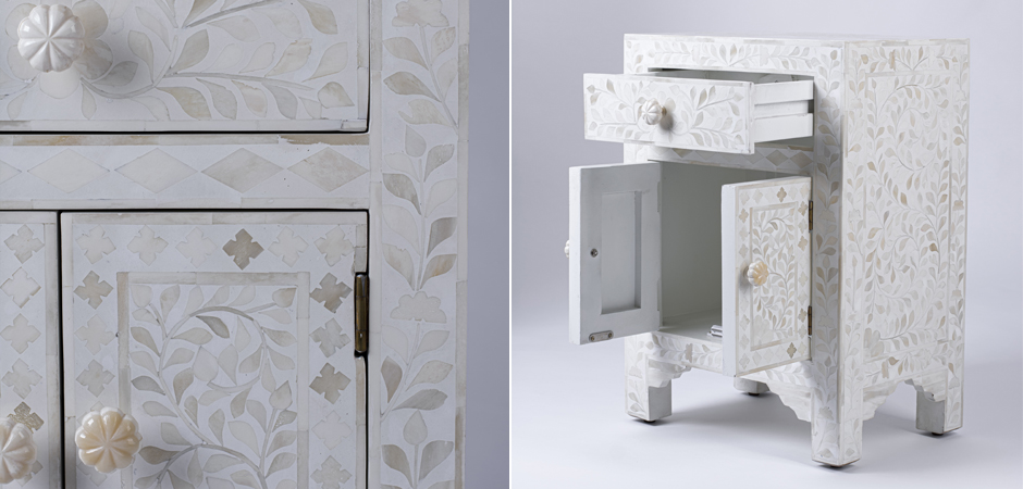 Тумбочка с инкрустацией BONE INLAY BEDSIDE Белая