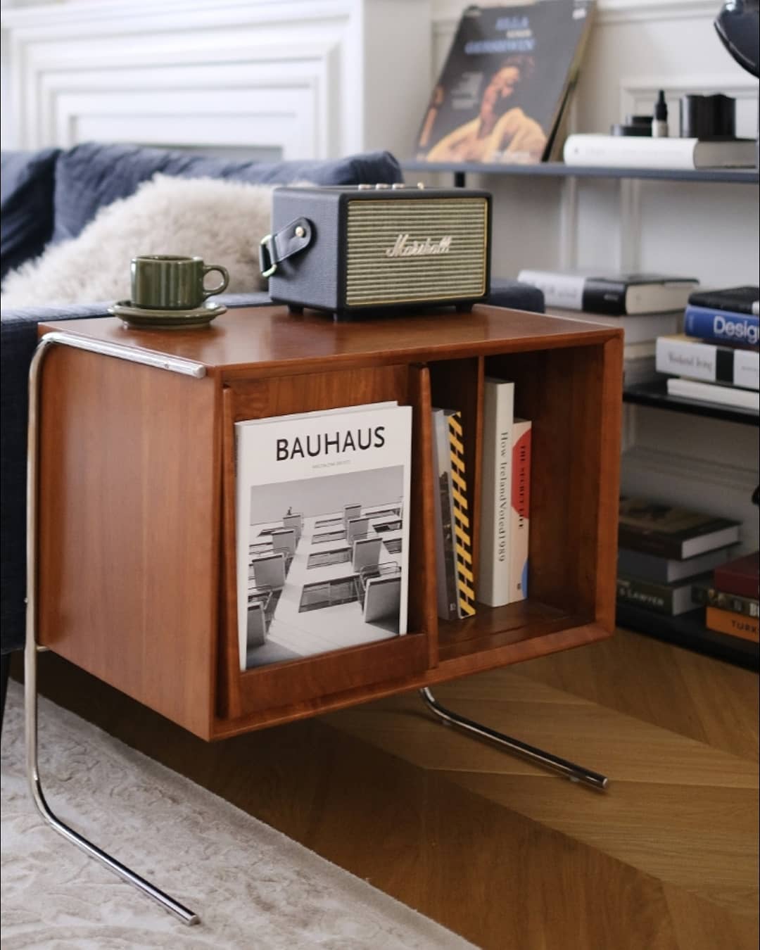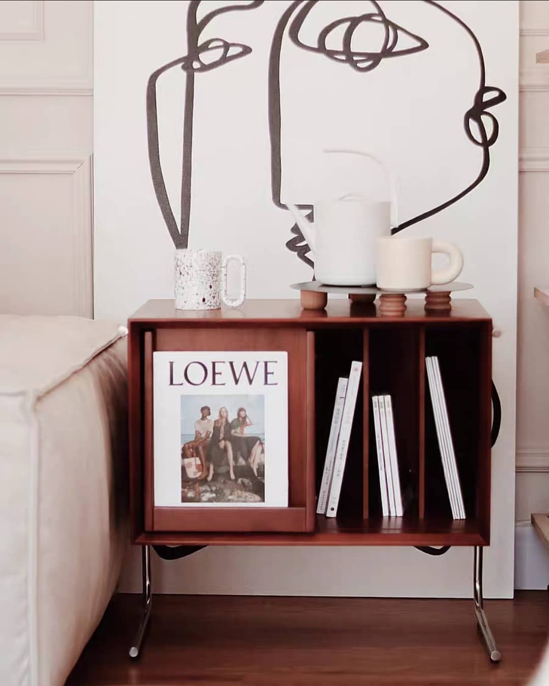 Стильная современная тумбочка. Оригинальный, интересный дизайн, в котором чувствуется творческий неординарный подход. Массив, шпон вишнёвого дерева, нержавеющая сталь со специальным покрытием.