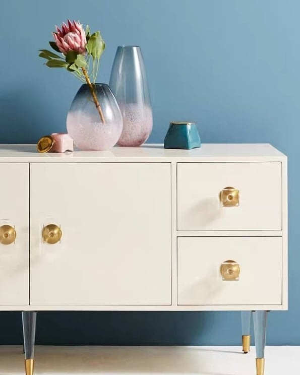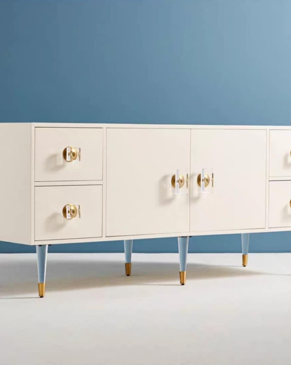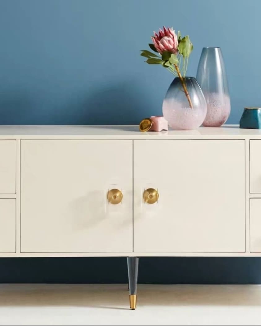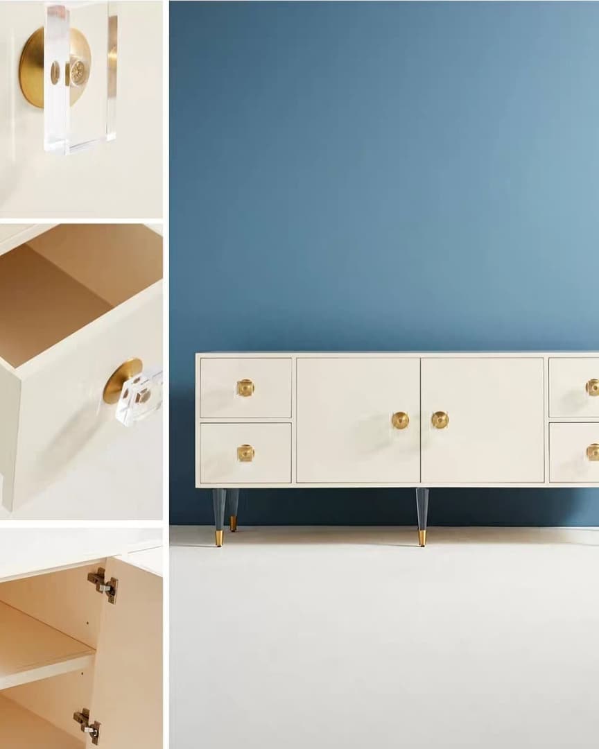Твердая древесина, высокотехнологичная, экологичная краска, и очень неожиданное решение – ножки и ручки из прозрачного, как стекло, акрила, который прямо сейчас, со скоростью тайфуна, набирает огромную популярность.