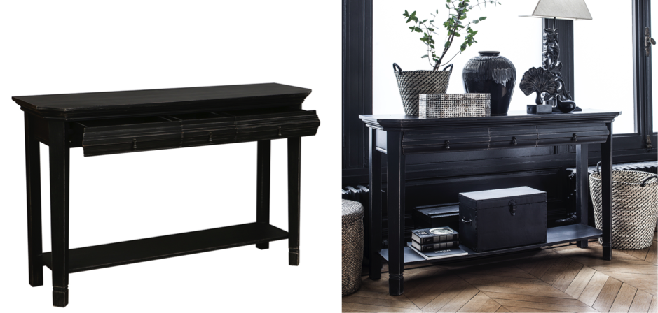 CONSOLE NOIRE 3 TIROIRS BRUGES A398