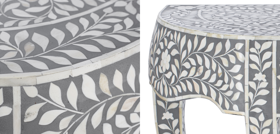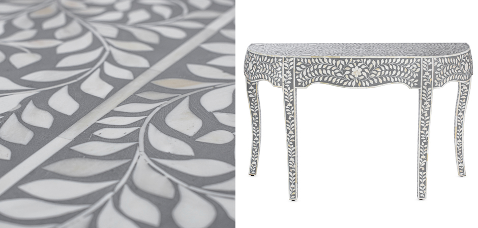 Консоль серый орнамент отделка кость BONE INLAY CONSOL TABLE