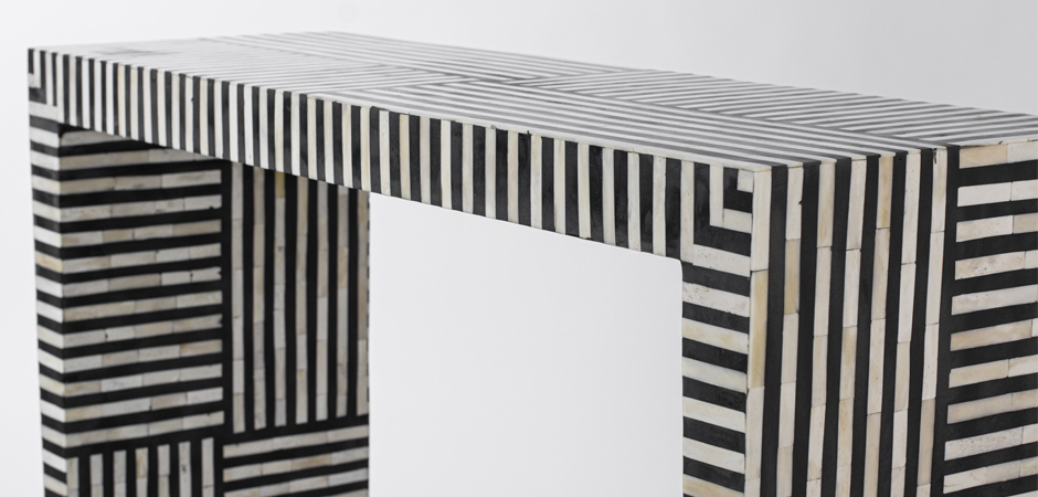 Консоль черно-белая отделка кость BONE INLAY CONSOL