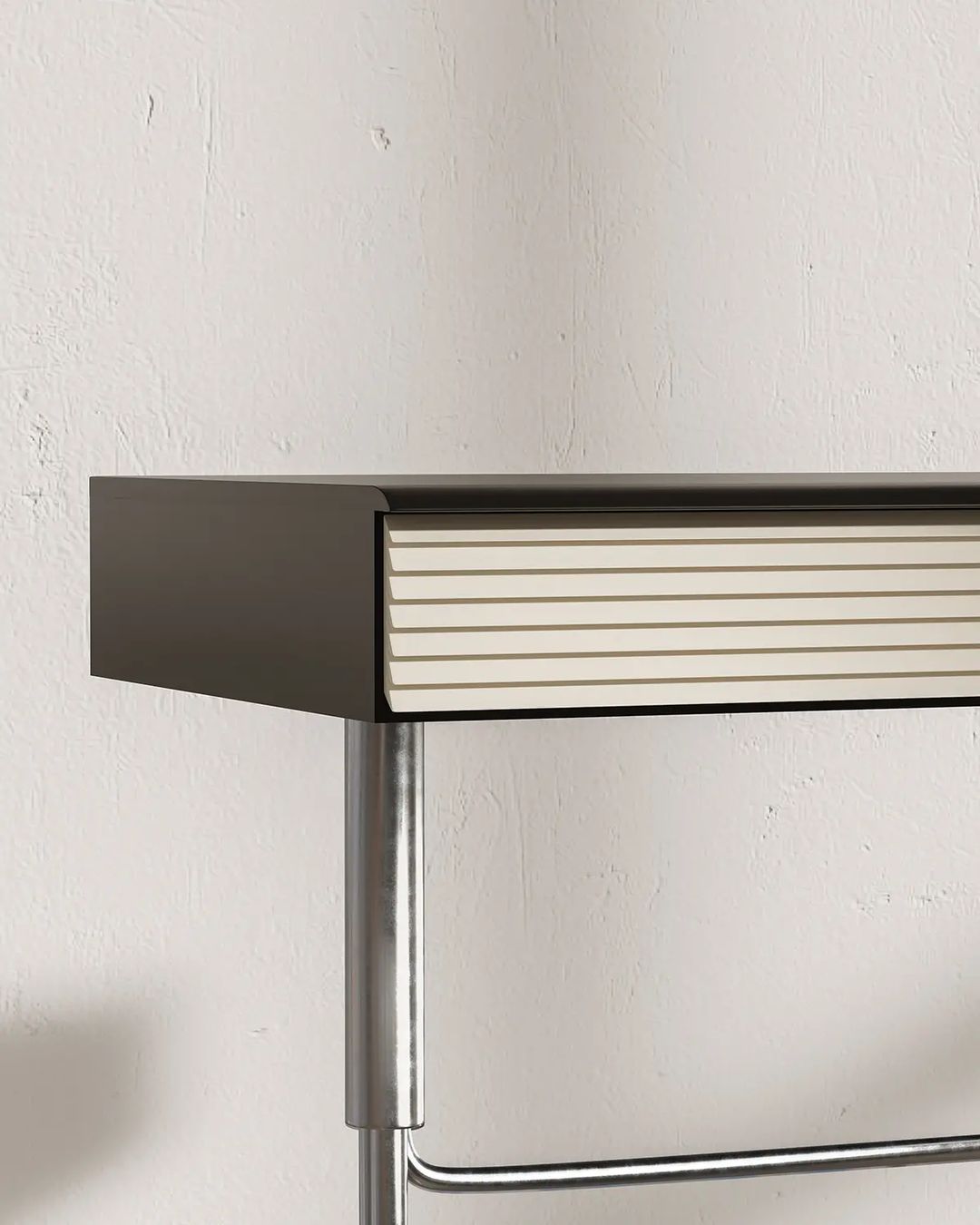 Очаровательный и изящный консольный столик, который достойно украсит личное пространство прекрасной леди. Стильный и современный дизайн. Мдф, нержавеющая сталь со специальным покрытием.