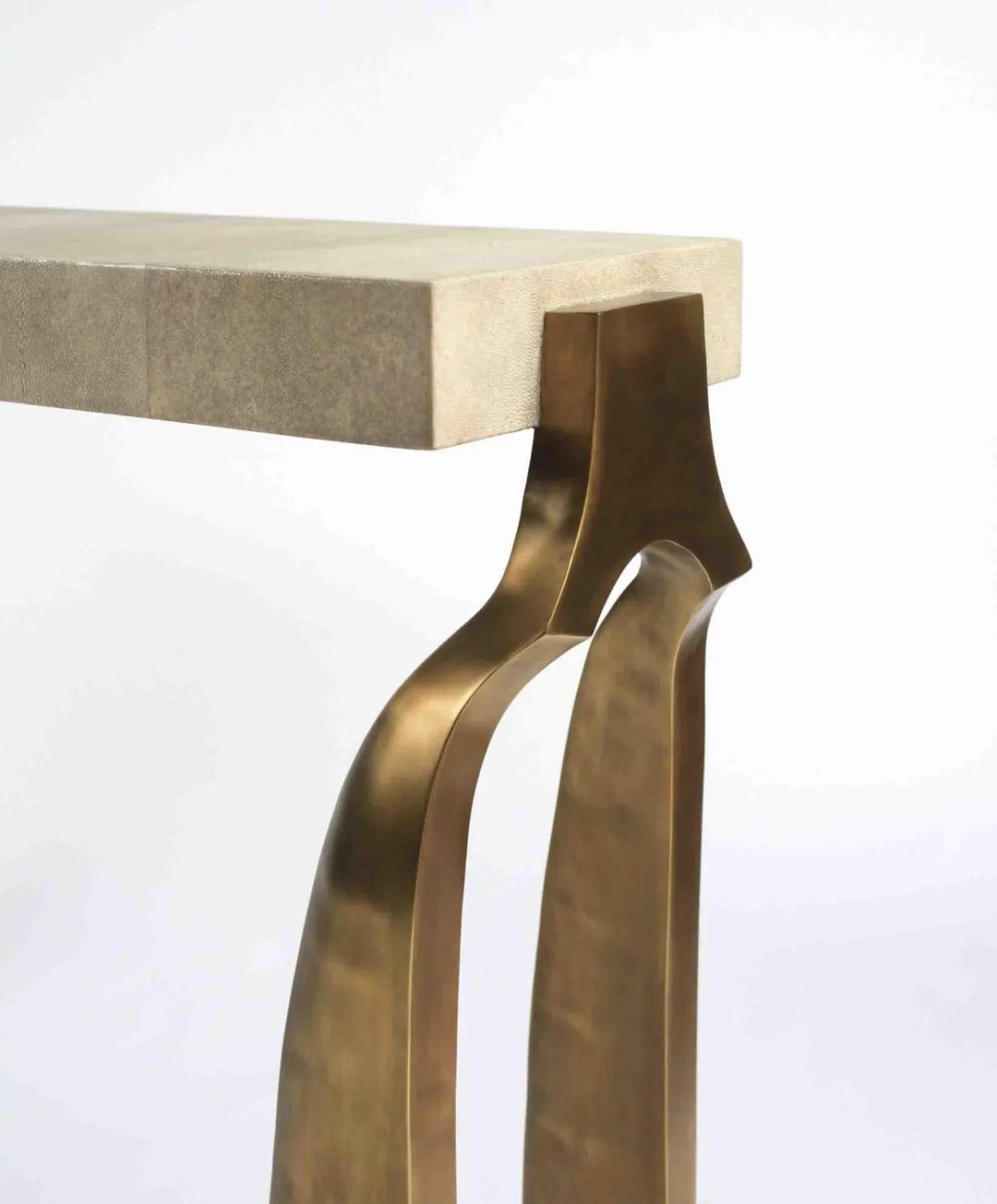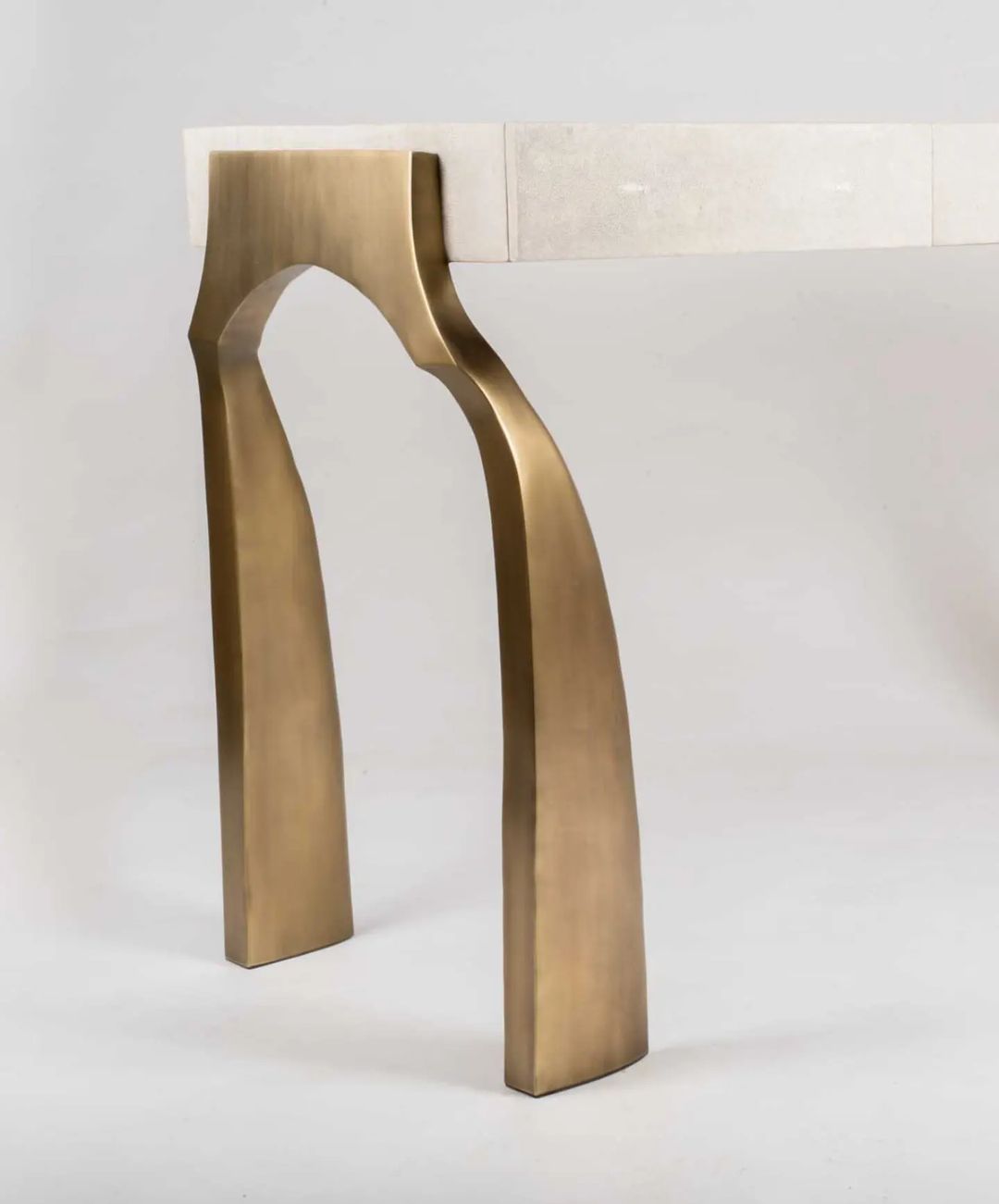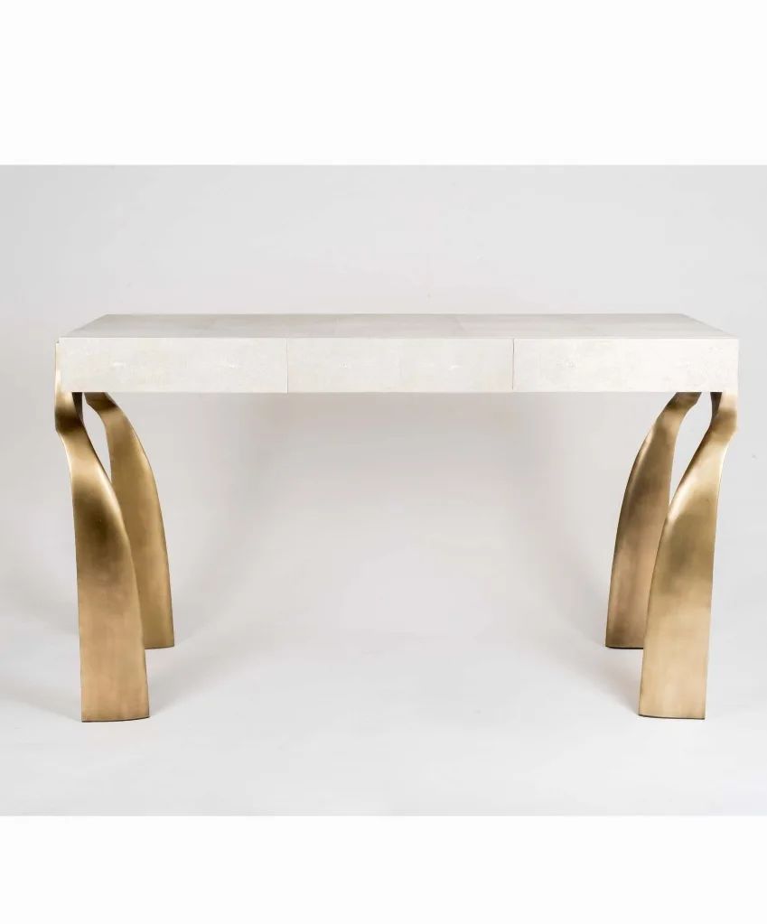 Уникальная консоль с легкой отсылкой к античности. Благородная, стильная и штучная красота для вашего личного пространства. 100% ручная работа. Столешница – мрамор с обработанной под шагрень (кожа ската) поверхностью, очаровательное подстолье – патинированная (состаренная) латунь.