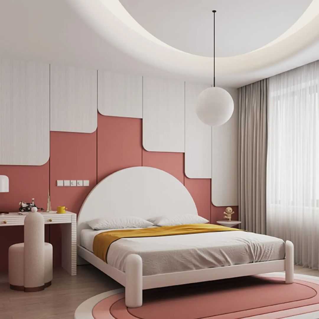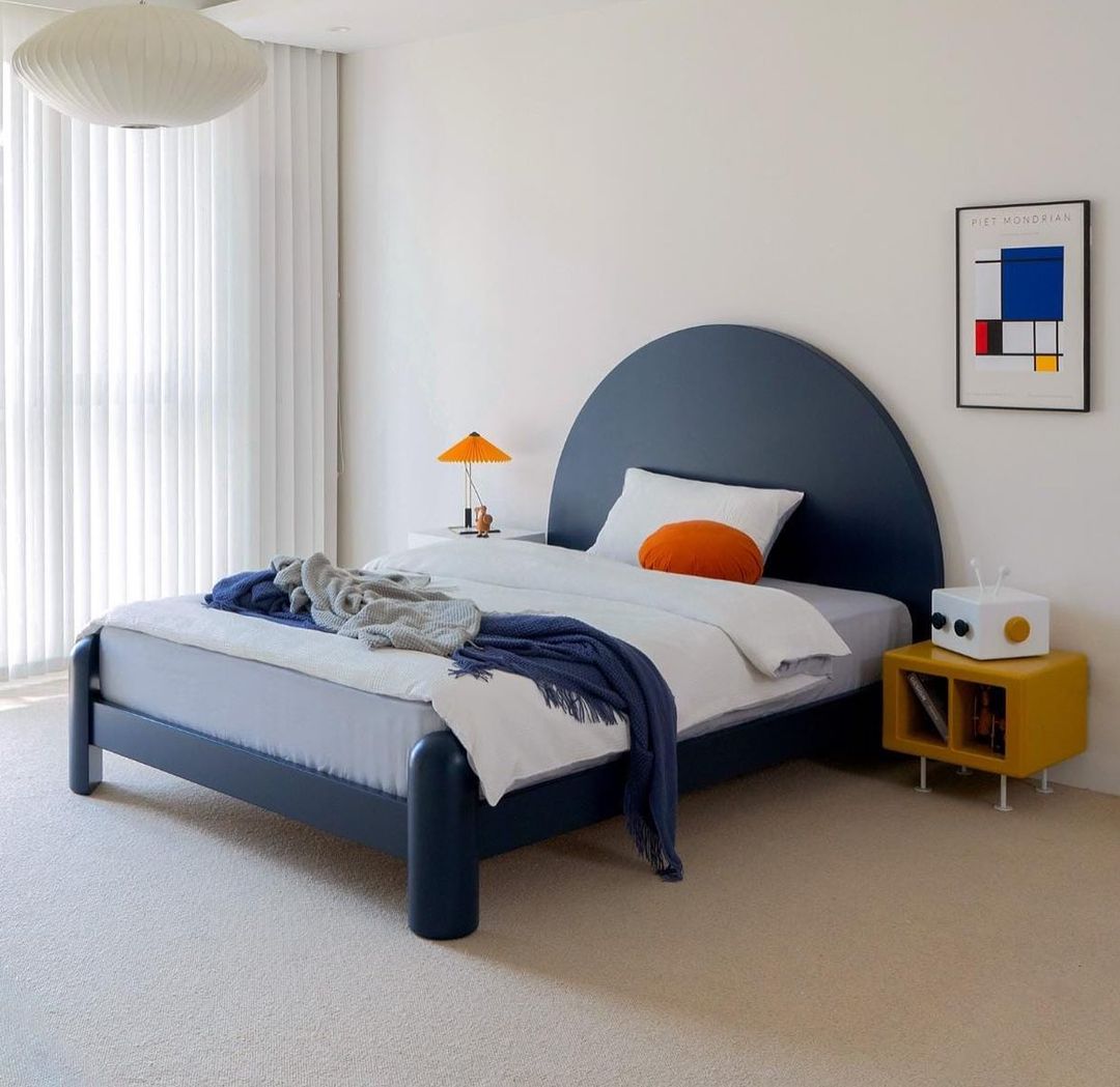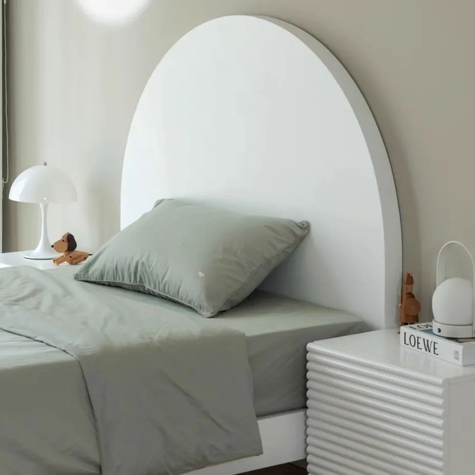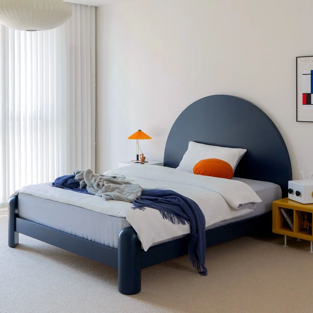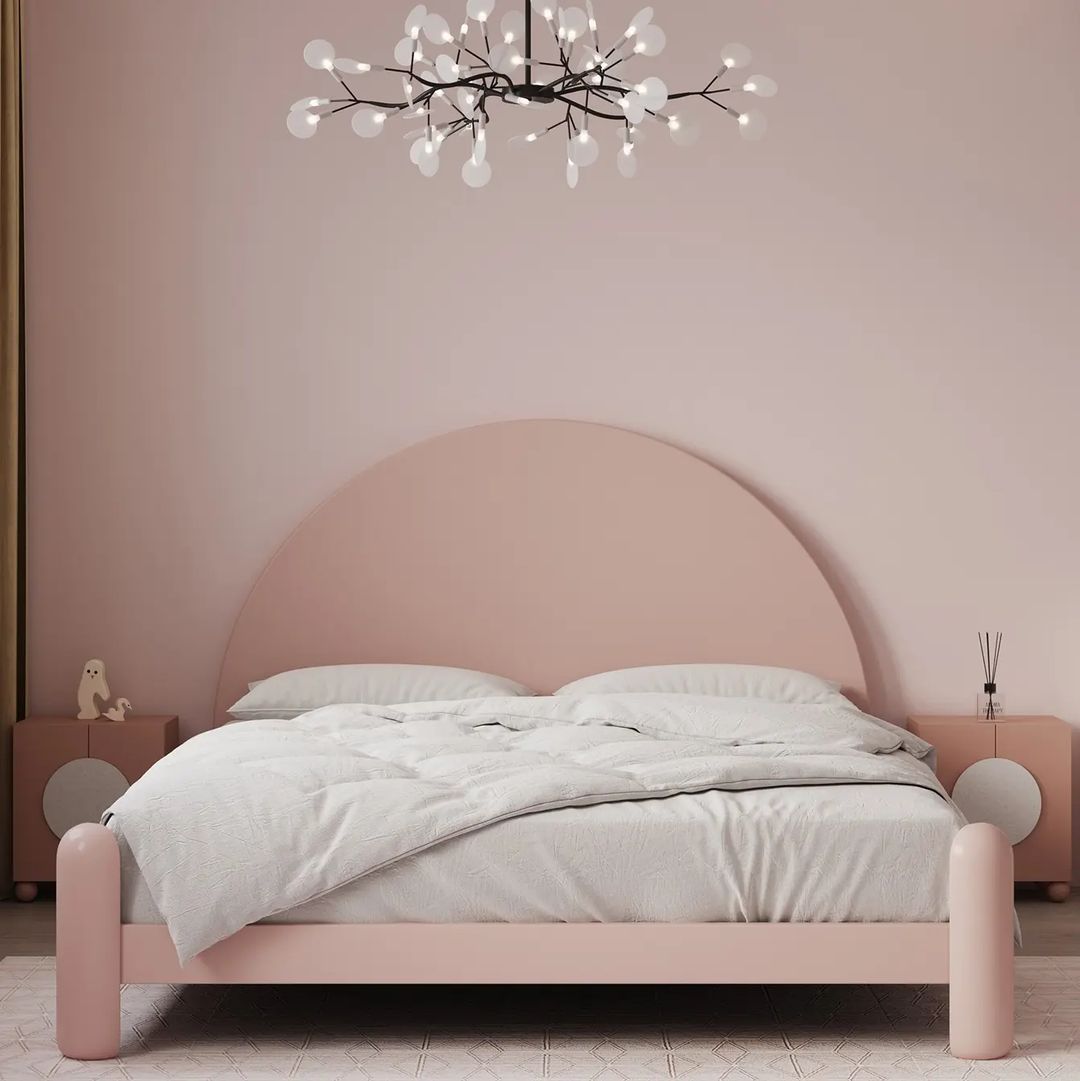 Роскошная двуспальная кровать Monsterior Shop. Классное решение для стильной и уютной спальни. Современный дизайн с очаровательным, полукруглым изголовьем. Мдф, массив сосны, экологичная эмаль.