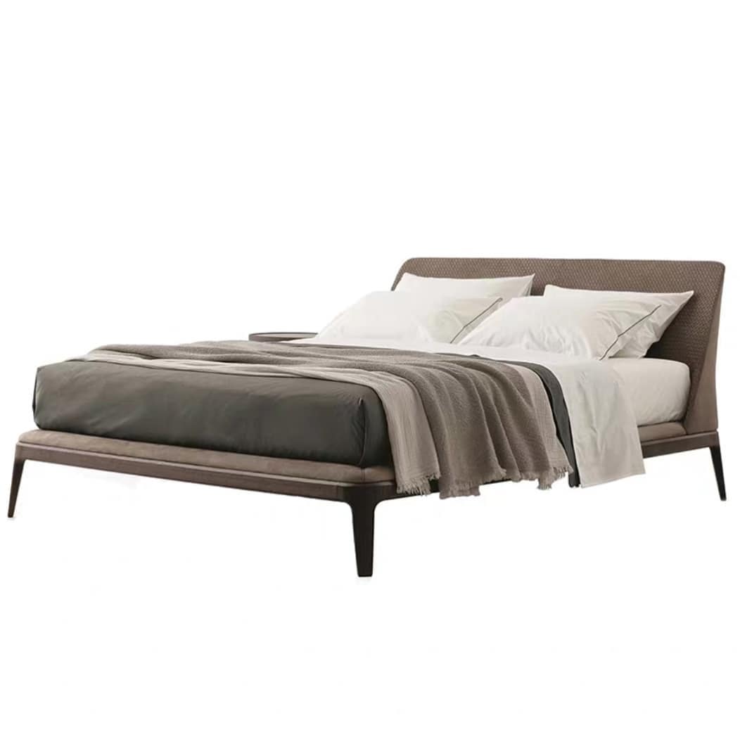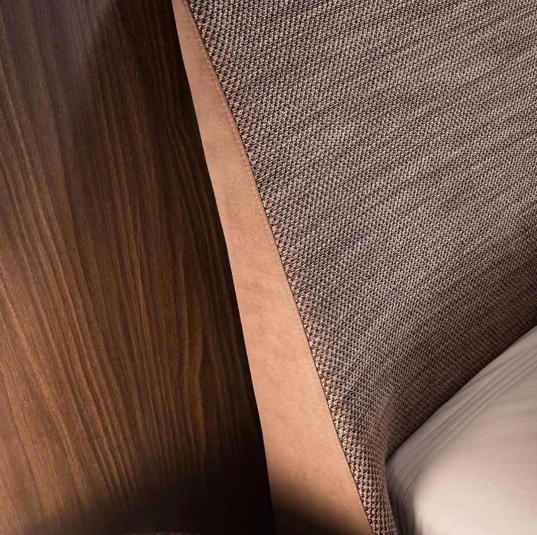 Двуспальная кровать для роскошной спальни! Изысканный дизайн в итальянском стиле. Комбинированная обивка из фактурной ткани и замши. На заказ возможны варианты с обивкой из натуральной кожи, экокожи и нубука, в различных сочетаниях. Надежный каркас из североамериканского ясеня, опоры – из цельного дерева. Наполнитель спинки – смесовой хлопок.