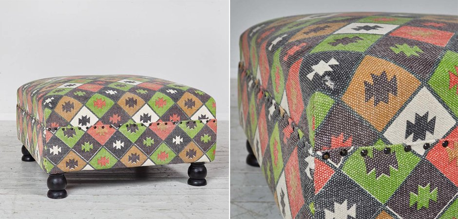 Пуф с зеленым орнаментом KELIM Pattern