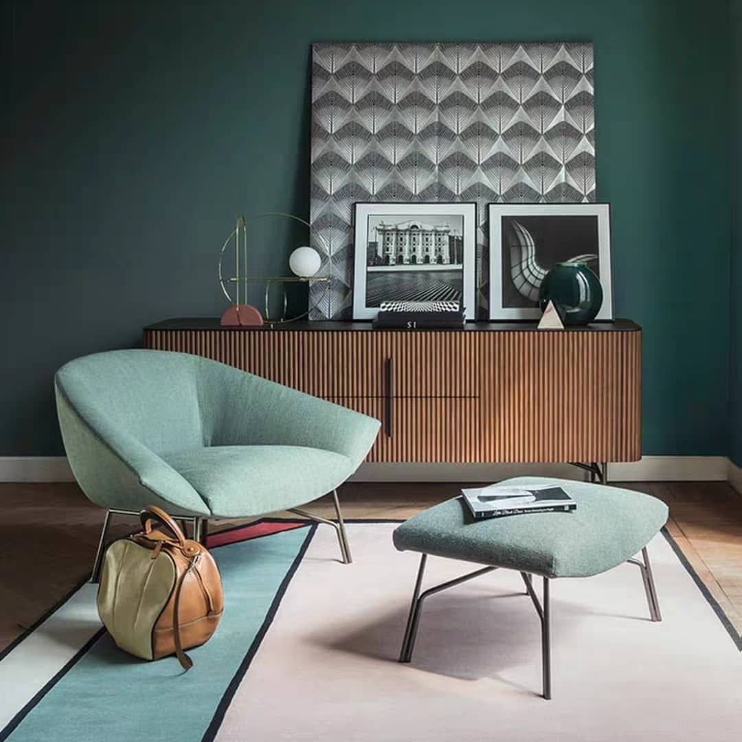Ножки из высококачественной нержавеющей стали – черного или металлического цветов. Очаровательная банкетка, изготовленная в том же стиле, что и кресло.