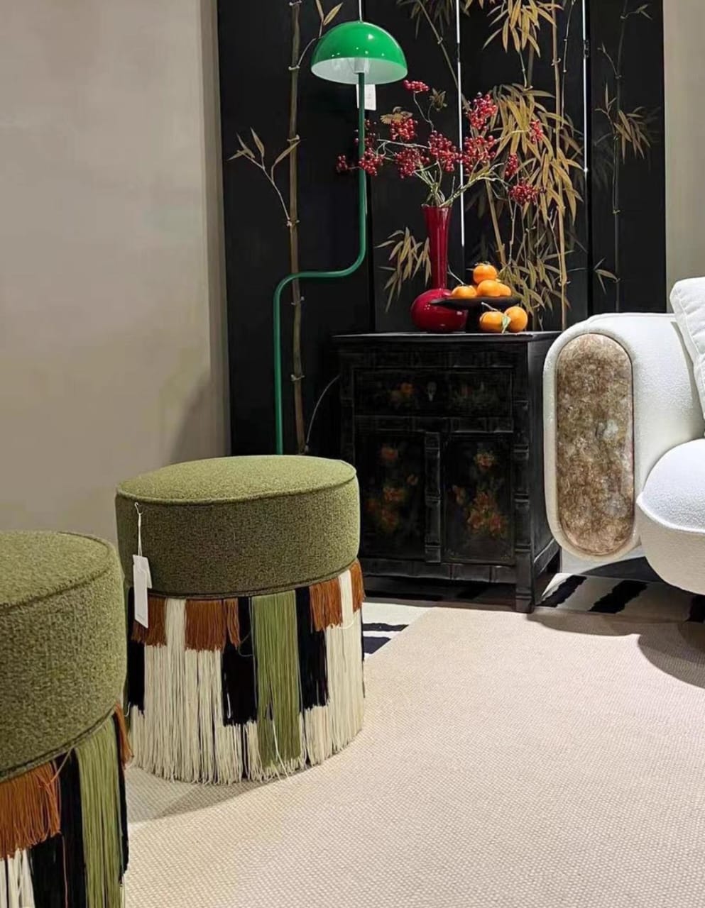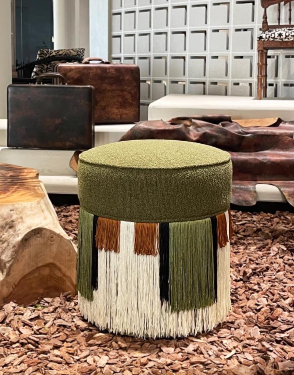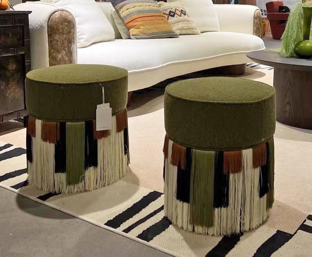 Классный пуф Monsterior Shop из высококачественного текстиля. Оригинальный дизайн, геометрический, с этно-отсылкой, орнамент бахромы. Отличное, яркое и комфортное решение для современного, уникального интерьера.